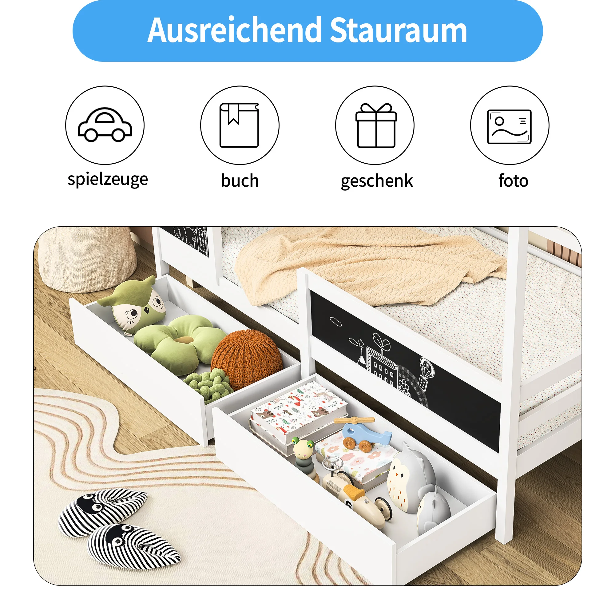 ♡SchnellansichtKinderhaus bett 90x200 cm, Holzbett mit Tafel und Stauraum, Massivholz mit Lattenrost, (ohne Matratze)199.78 EUREUR 352.80Heiß★★★★★5.0