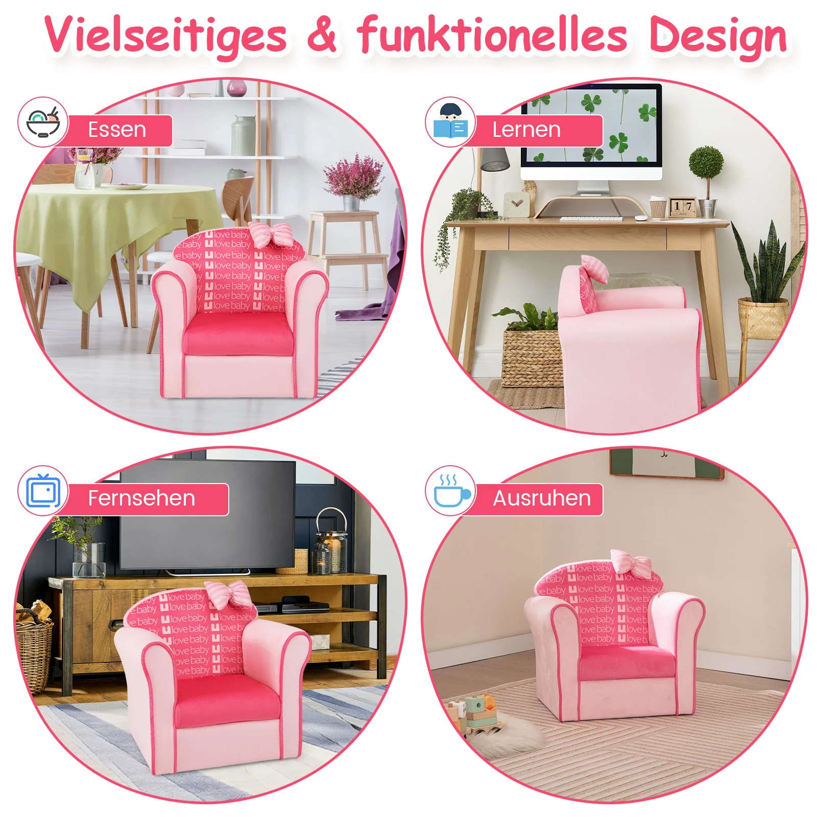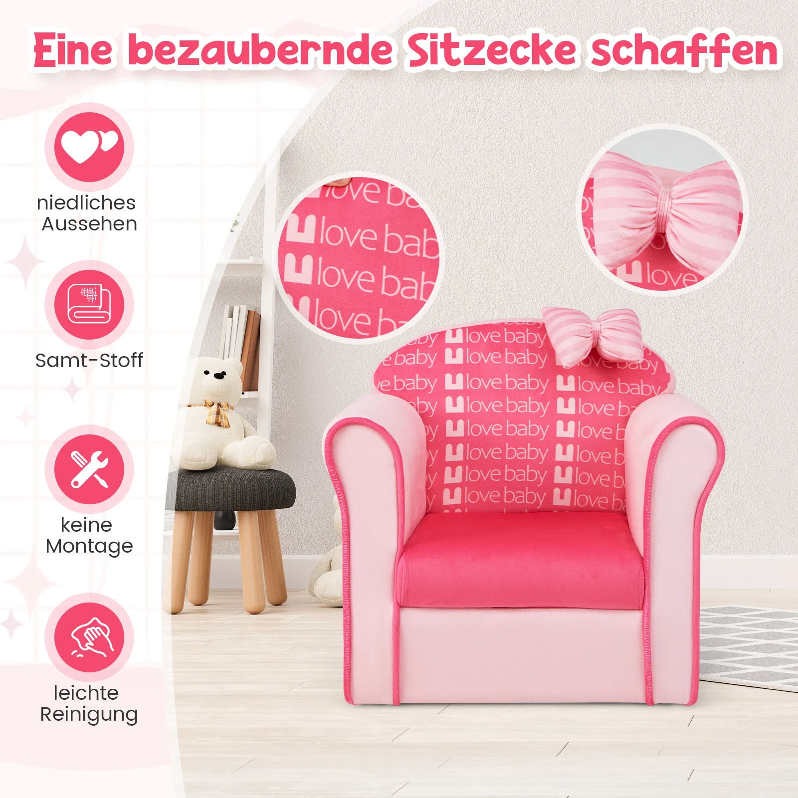 Kindersessel Kindersofa Kindercouch Babysessel für Mädchen und Jungen Kindermöbel Kinder Sessel Schaumstoff, Rosa Schleife - TopDealBox