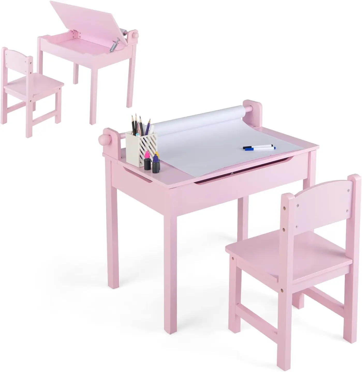 ♡SchnellansichtKinder schreibtisch mit Stuhl, Kinder tisch mit Klapptisch platte, mit Papierrollen halter und Markierungen für Kinder ab 3 Jahren64.36 EUREUR 114.93Heiß