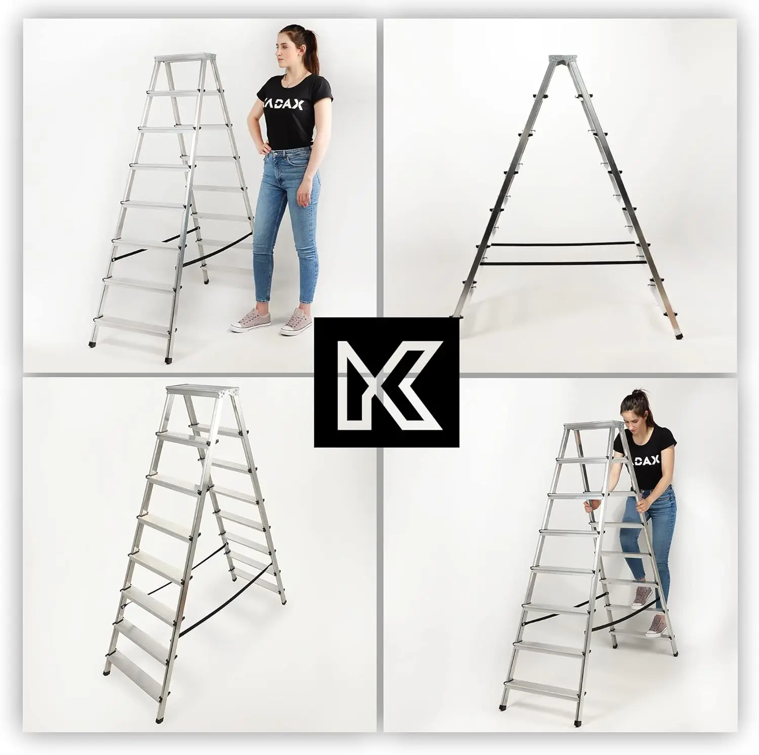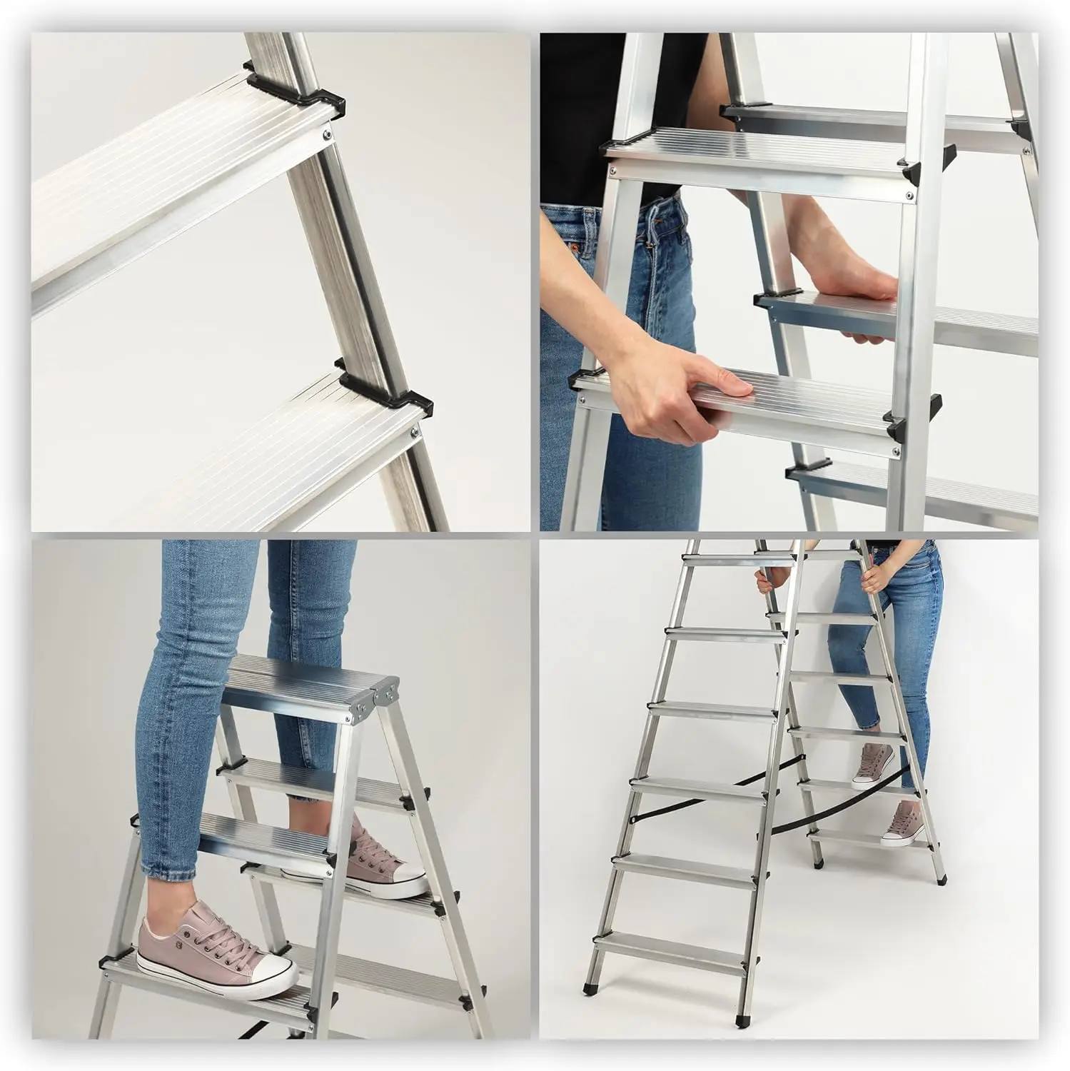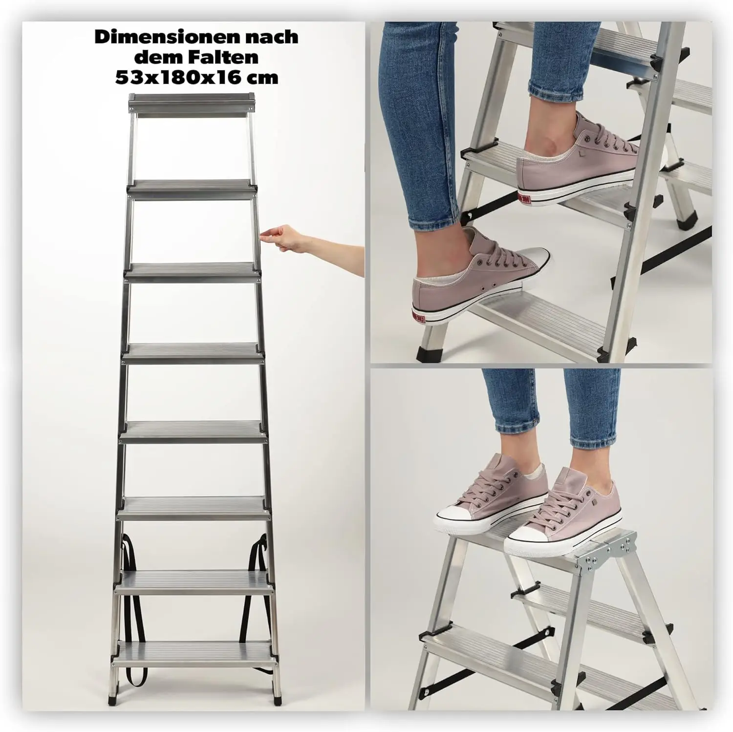Klappbare Trittleiter, 8-stufige Leiter mit rutschfesten Füßen, Tragfähigkeit bis 150 kg, vielseitige Haushaltsleiter für den Innenbereich - TopDealBox