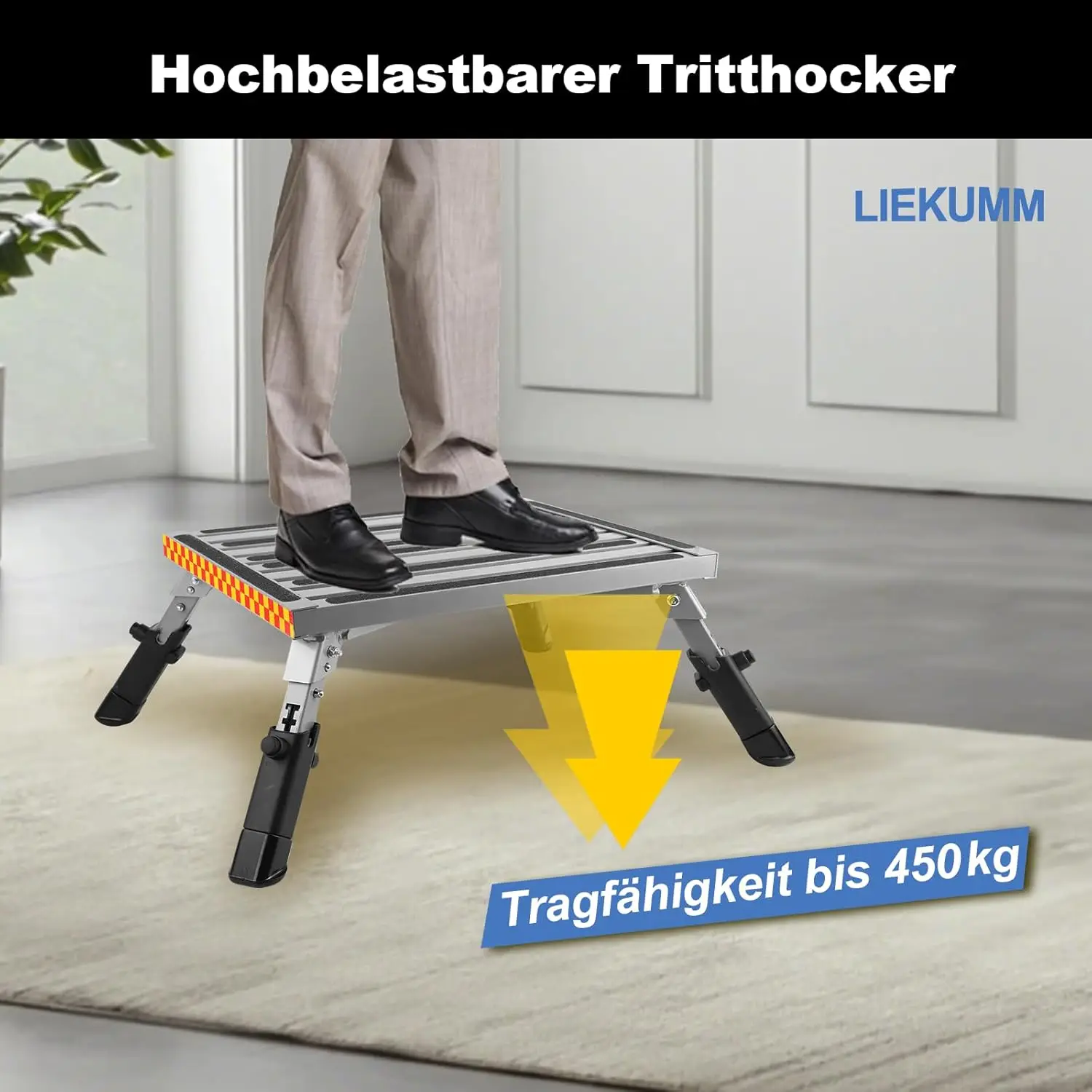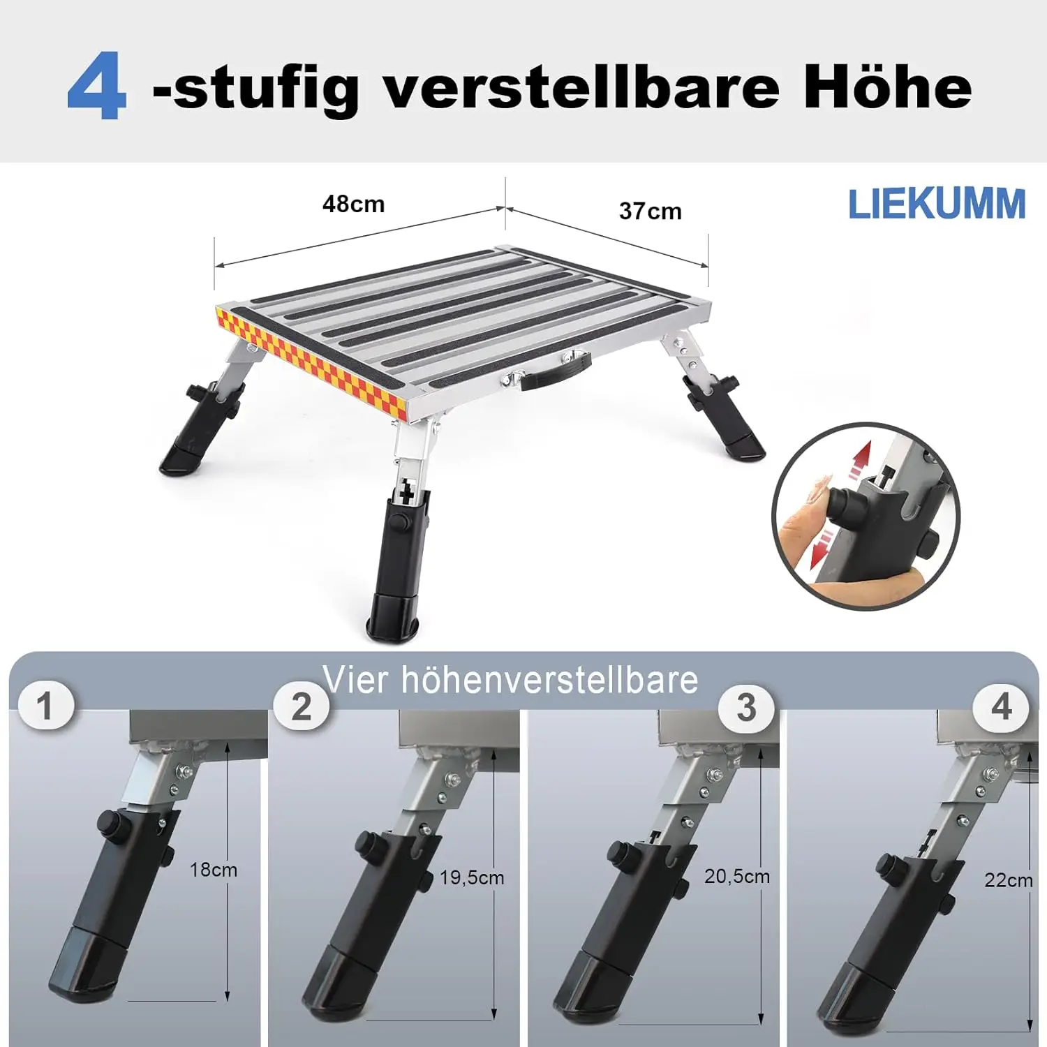 Klappbarer Tritthocker, 48 x 37 cm große Plattform mit rutschfesten Gummifüßen und höhenverstellbarer Arbeitsplattform mit 450 kg Fassungsvermögen - TopDealBox