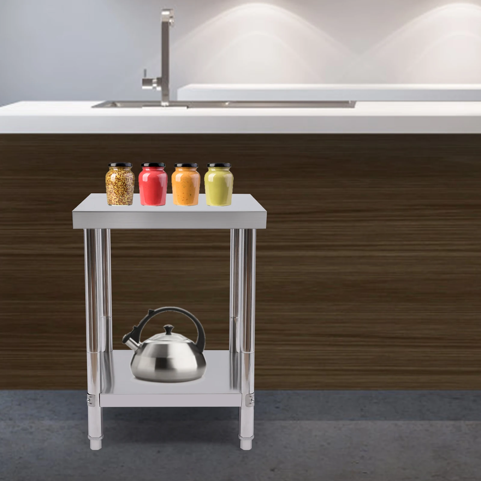 ♡SchnellansichtKüchen-Arbeitstisch aus Edelstahl, offenes Design, Gastronomie, Lebensmittelzubereitung, 2-lagiger Lebensmittelzubereitungstisch 400 kg/881 lbs (60 x 60 x 80 cm)76.99 EUREUR 1873.99Heiß