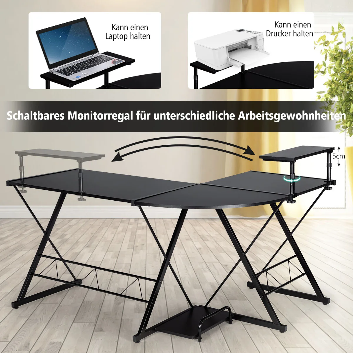 L-Förmiger Computertisch aus Holz, Eckschreibtisch mit mit Monitorständer & Ablagefach, platzsparender Schreibtisch für Büro - TopDealBox