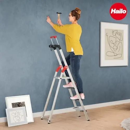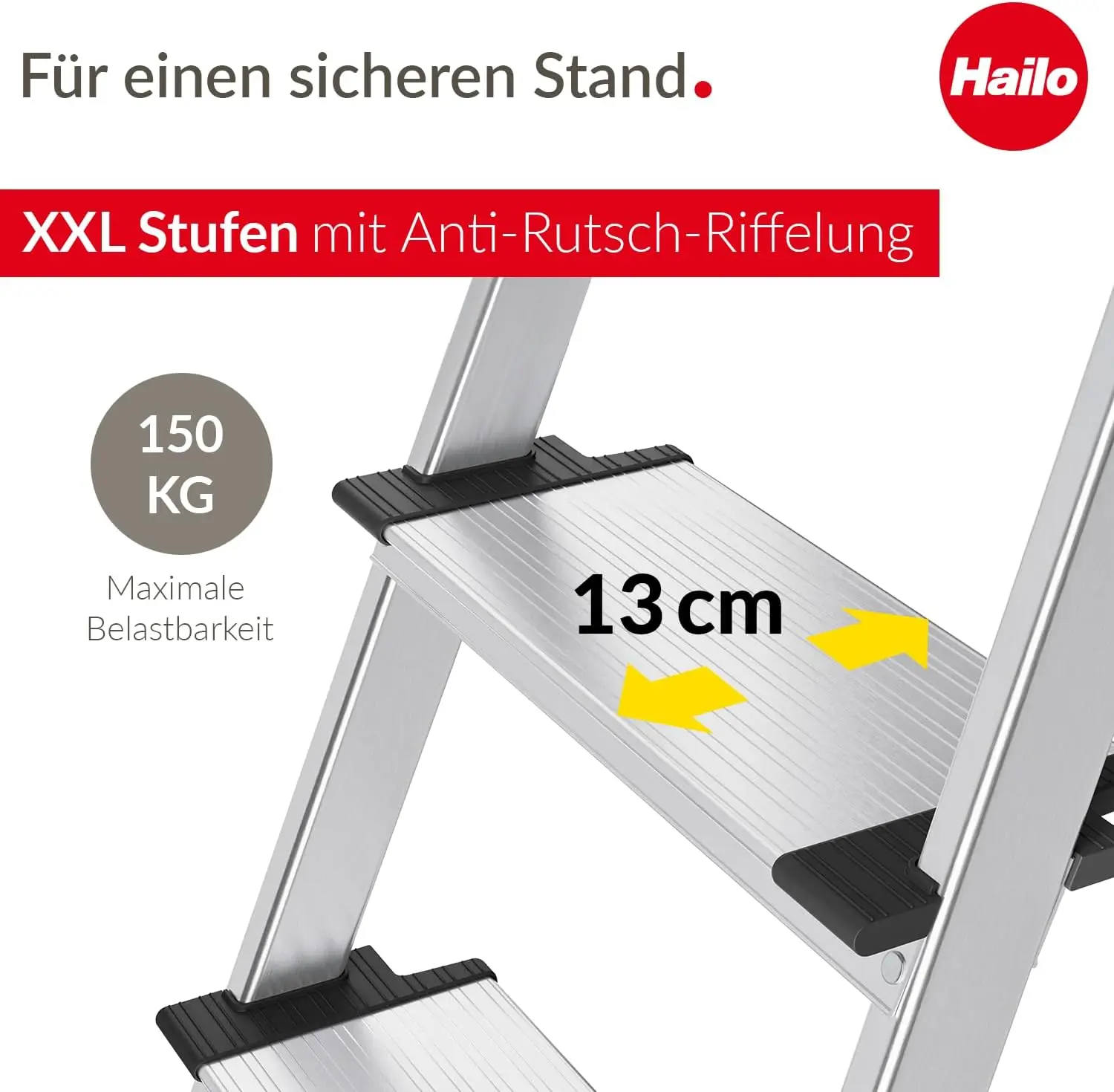 L85 ComfortLine Alu-Sicherheits-Stehleiter - 4 XXL-Stufen belastbar bis 150 kg - Tiefe Standfläche & Haltegriff - Stehleiter - TopDealBox