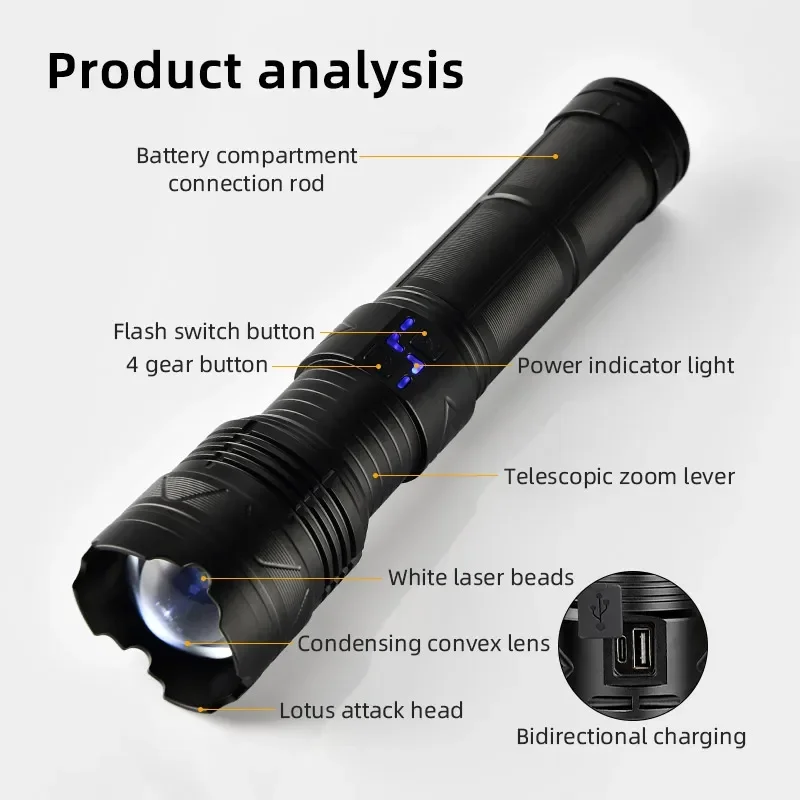 Hochleistungs-LED-Taschenlampe, superhell, große Reichweite, wiederaufladbar, extrem leistungsstark, für den Außenbereich, taktische Handlampe, Camping-Laterne - TopDealBox