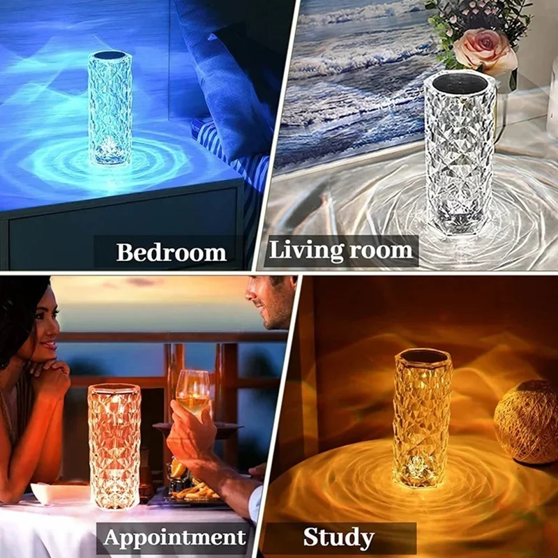 Kristall-Schlafzimmer-Nachttischlampe, kreative Schreibtischlampe, 16-farbige Fernbedienung, Heimdekorationslampe, warme Schreibtischlampe - TopDealBox