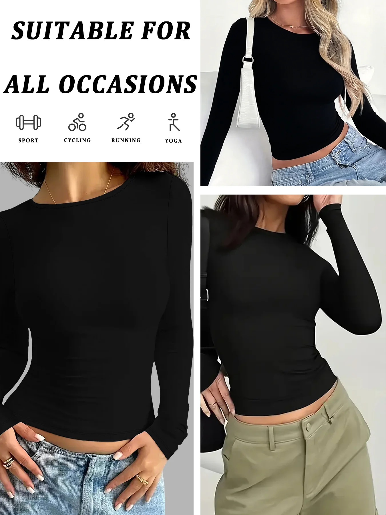 Langarm-T-Shirt für Damen. Superweiches, sportliches Yoga-T-Shirt mit Rundhalsausschnitt für Workout und Laufen - TopDealBox
