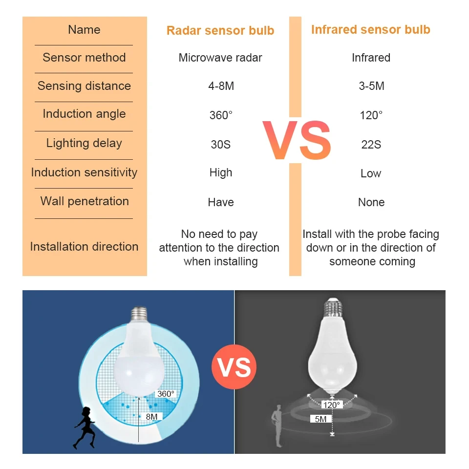 ♡Schnellansicht1pc Motion Sensor Led-lampe 6W 9W 12W 15W 18W 20W E27 Radar sensor Licht Lampe Lamparas 110V 220V Für Home Treppen Pathway1.49 EUREUR 29.30Heiß★★★★★★4.9