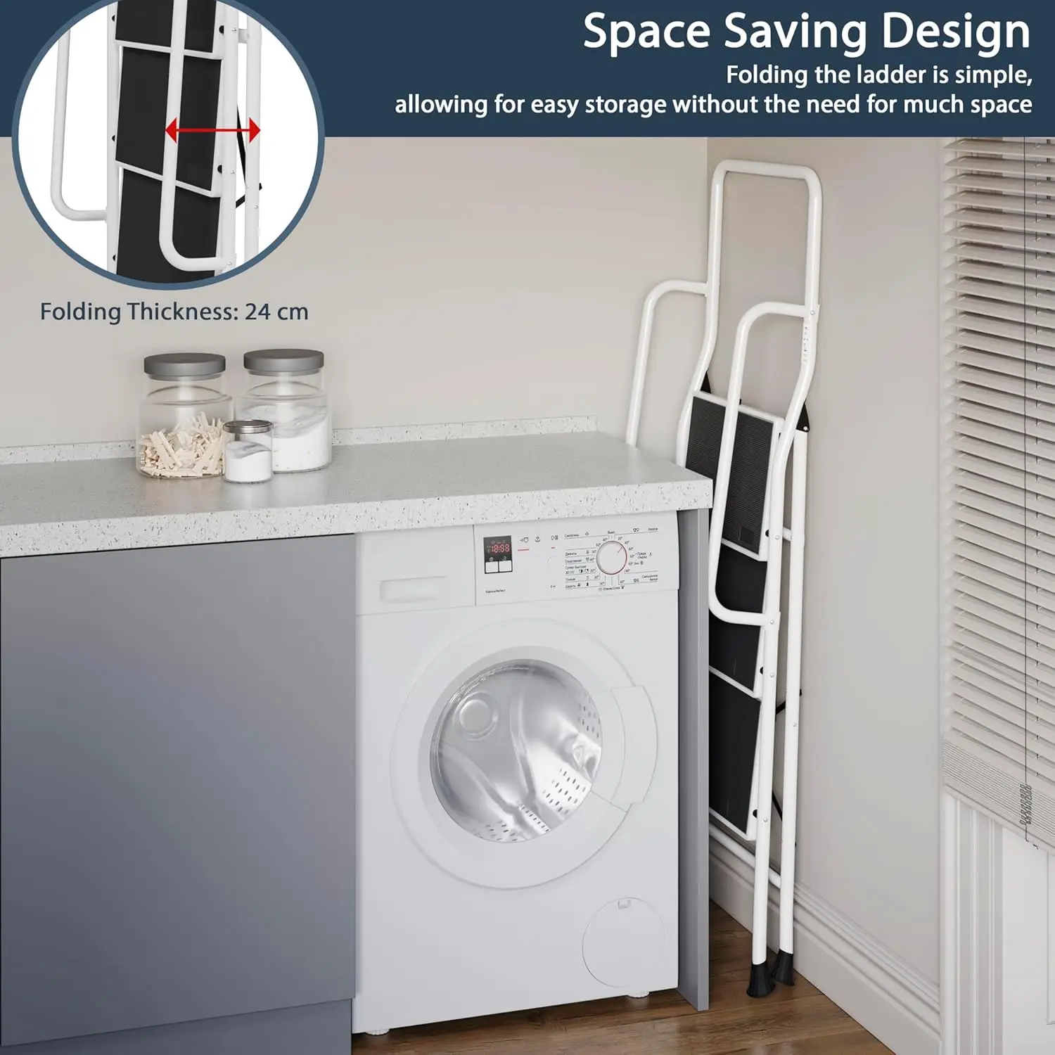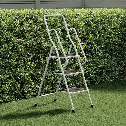 Leiter mit Sicherheitsgriff, 3 Stufen, faltbar, Anti-Rutsch-Matte für Sicherheit, sicher, robust - TopDealBox