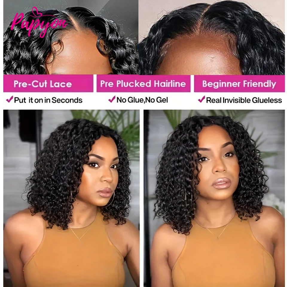 ♡SchnellansichtLockige kurze Bob-Perücken, 13 x 4, 7 x 5, leimfrei, bereit zum Tragen, brasilianisches 100 % Echthaar, tiefe Welle, 13 x 6 HD-Spitzenfront-Perücke für Frauen, 250 %70.39 EUREUR 1237.31Heiß★★★★★★4.9