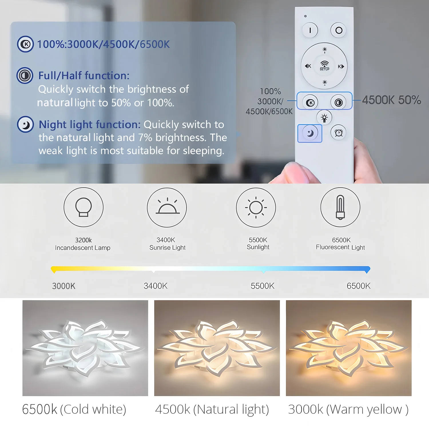 Luxus Led-deckenleuchte Weiß/schwarz Lotus Kronleuchter Decke Lichter Nordic Glanz Dimmbare Lobby Wohnzimmer Schlafzimmer Lampe - TopDealBox
