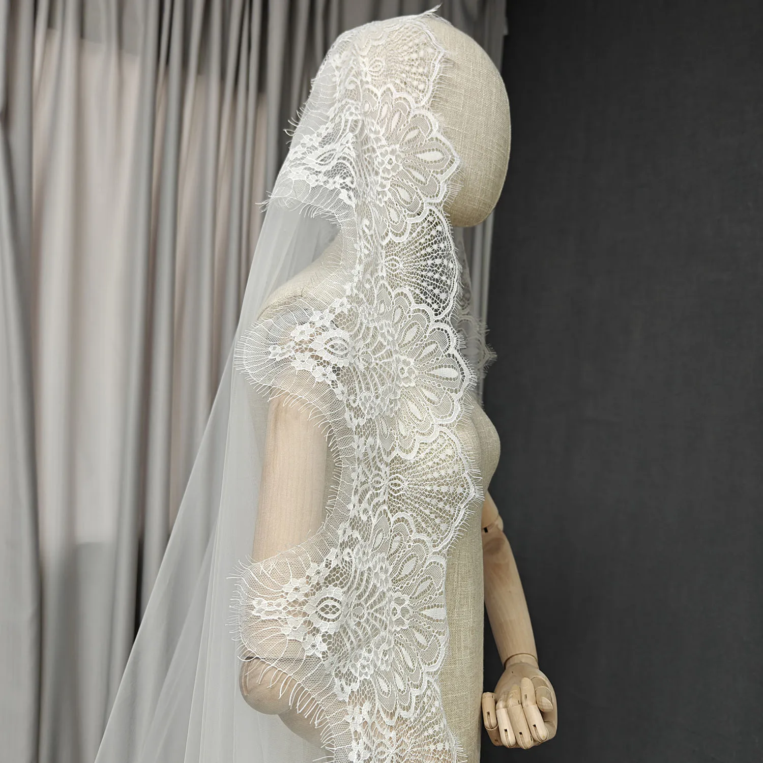 ↑Maßgefertigter Mantilla-Schleier mit breiter Wimpernspitze, elfenbeinfarbener Chantilly-Spitzen-Hochzeitsschleier mit verstecktem Kamm, 2,5m/3m/3,5m/4m langer Schleier - TopDealBoxMaßgeschneiderte echte Fotos, 2 Schichten, Pailletten, Spitze, Kathedrale, Wald, Hochzeitsschleier mit Kamm, 3 m lang, weiß, elfenbeinfarben, 2 T-Brautschleier
