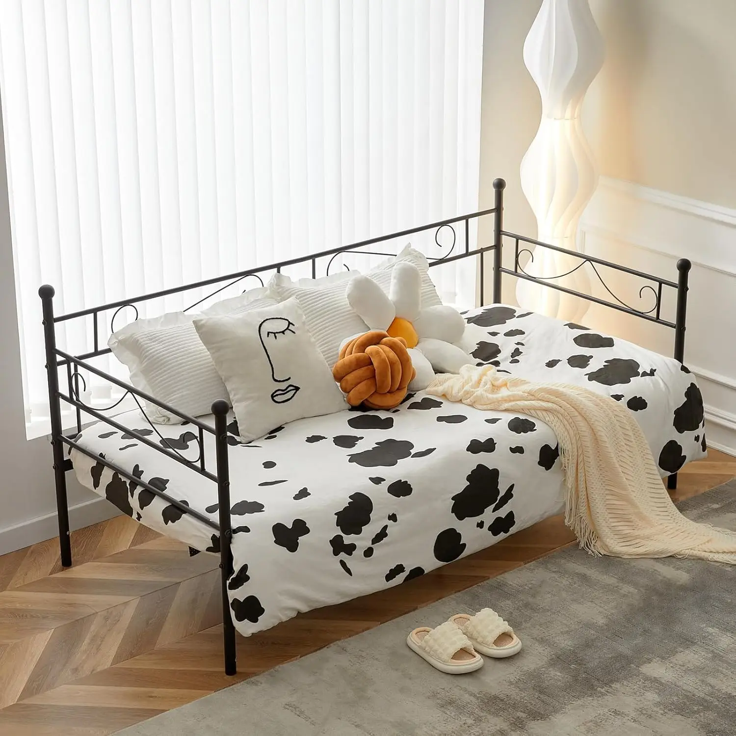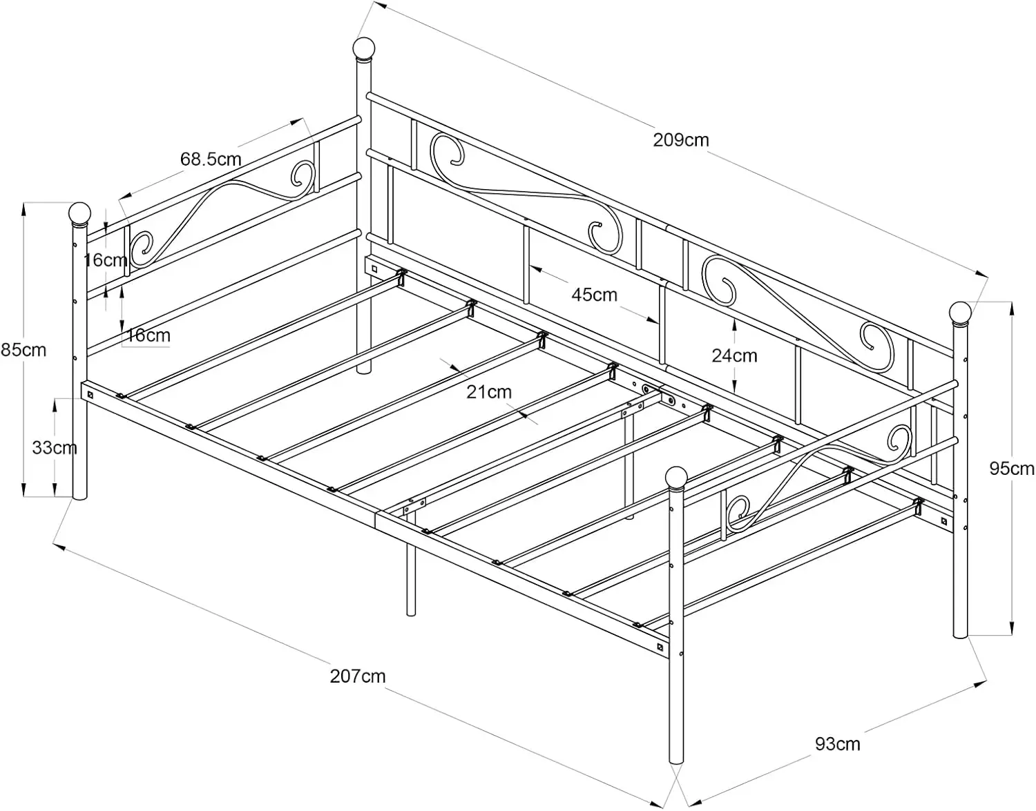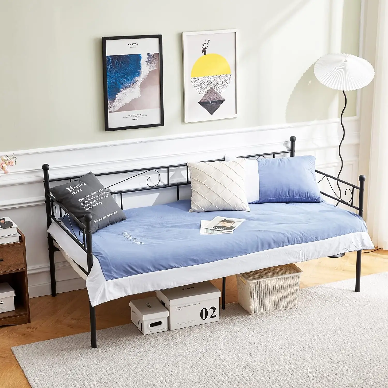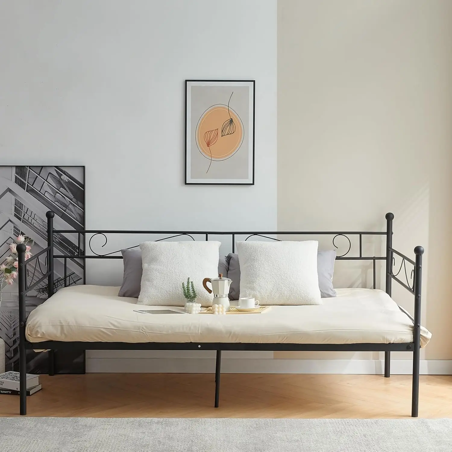 Metall-Schlafsofa-Rahmen, Eisen, geschmiedetes Einzelbett, keine Notwendigkeit für Matratzenunterstützung für 90 x 200 cm große Matratze, Schwarz - TopDealBox