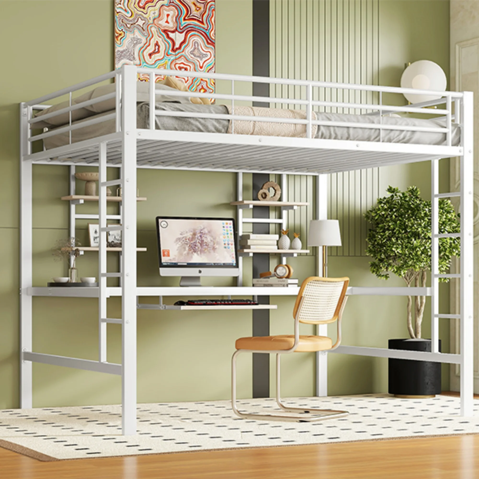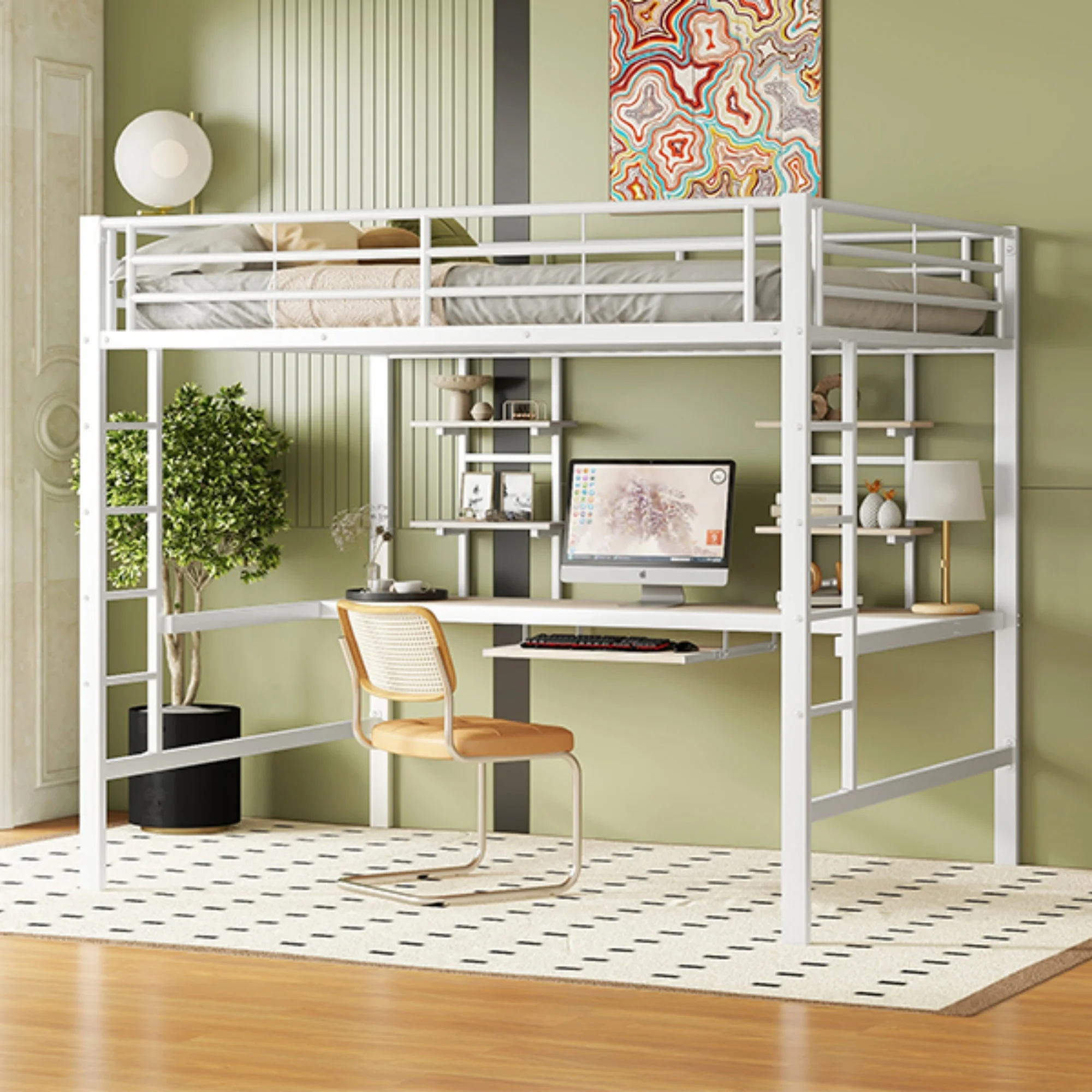 ♡SchnellansichtKinderbett Hochbett mit Stauraumtreppe 90*200cm, Massivholz+MDF, Etagenbett, Kinderbett mit großen Schreibtisch und Regalen,398.82 EUREUR 866.99Heiß★★★★★5.0