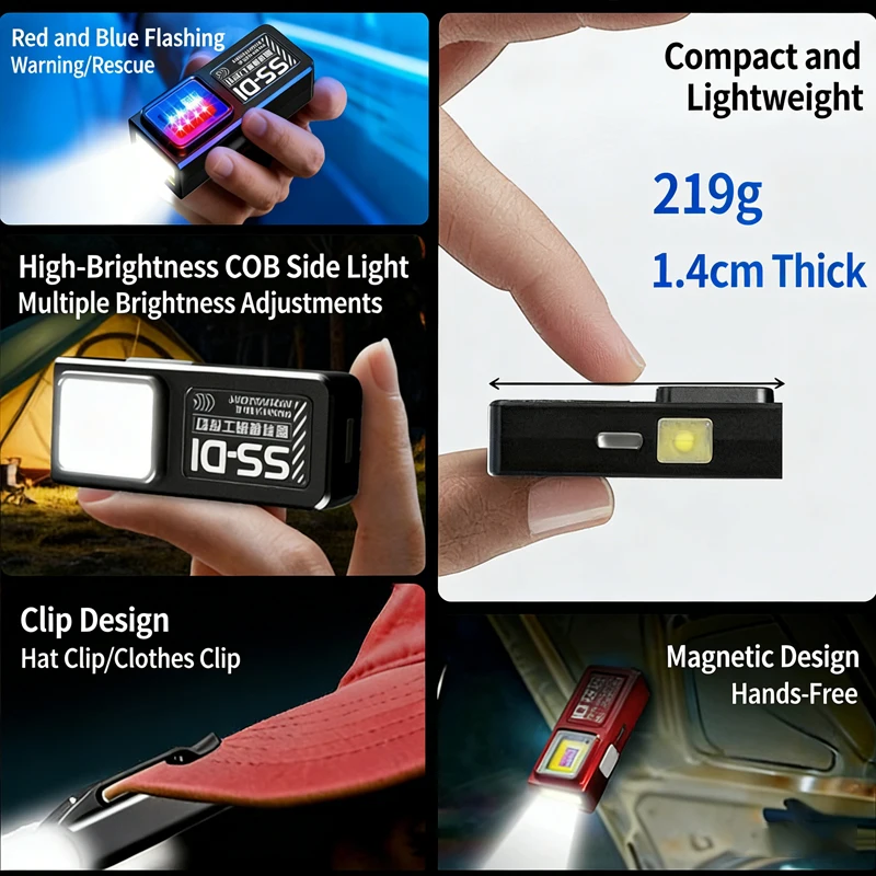 Mini COB LED Taschenlampe USB C wiederaufladbare leistungsstarke Arbeitsleuchte mit Clip Magnet wasserdicht EDC Camping Walking Taschenlampe - TopDealBox