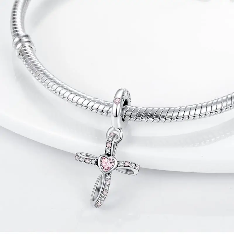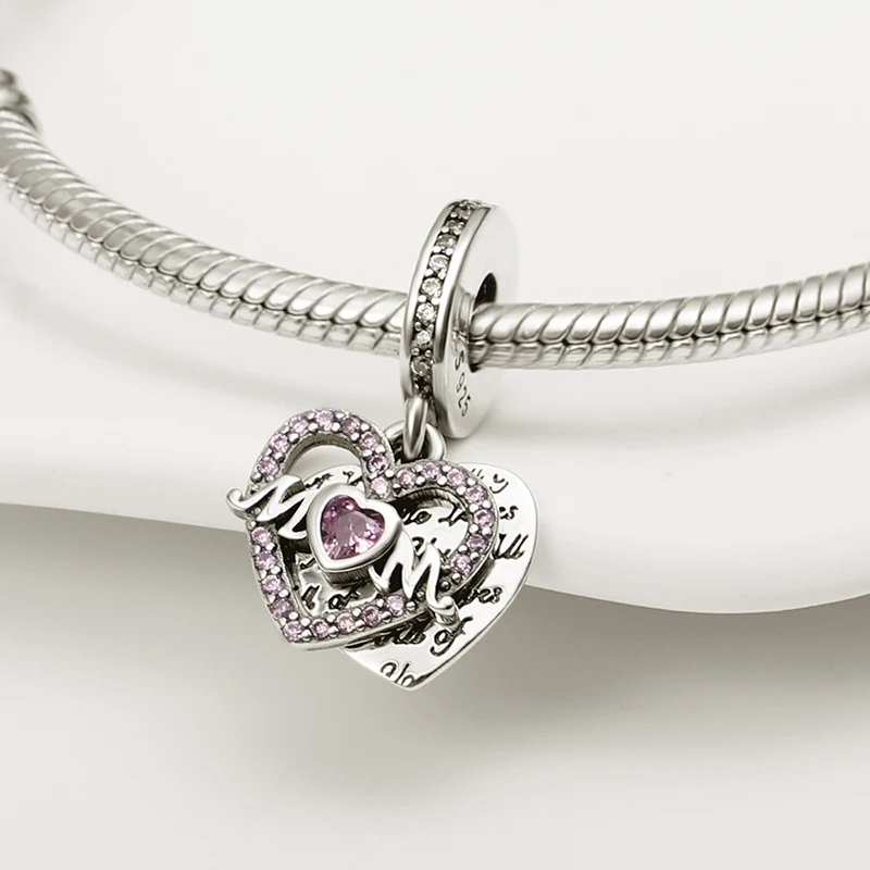 Mode 925 Silber Farbe Stamm Herz Form Bogen Rosa Charms Perlen Fit Pandach 925 Original Armbänder Feine DIY Geburtstag schmuck - TopDealBox