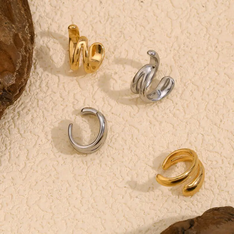 Mode Damen Piercless Ohrclip Ohrring Klassisch Gold Farbe Trendy Earcuff Ohrringe Mädchen Geschenk Einfacher Alltagsschmuck - TopDealBox
