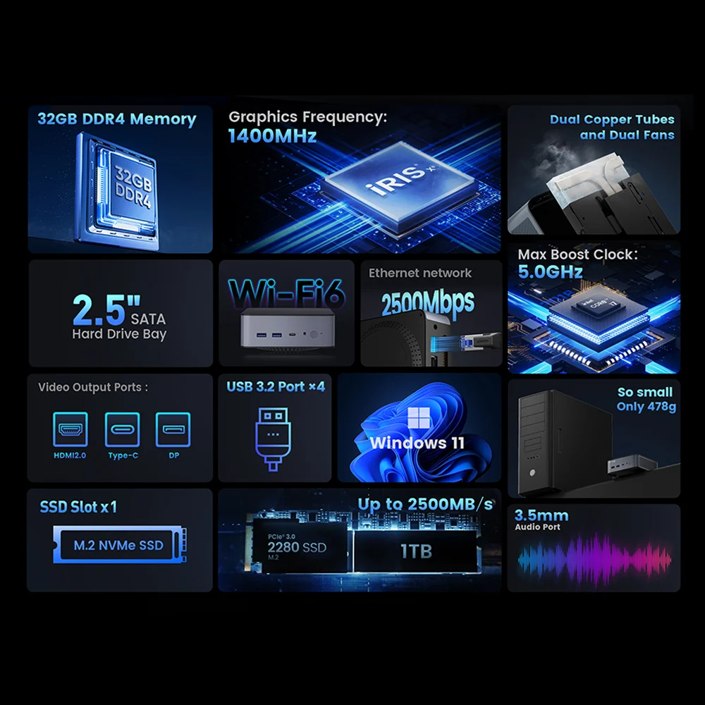 ♡SchnellansichtN-one AMD Ryzen 7 5825U/5800U Mini-PC 16 GB DDR4 512 GB SSD Micro-Desktop-Computer Dual-Band WiFi 6, Bluetooth 5.2 für Zuhause/Büro229.25 EUREUR 770.13Heiß★★★★★★4.7