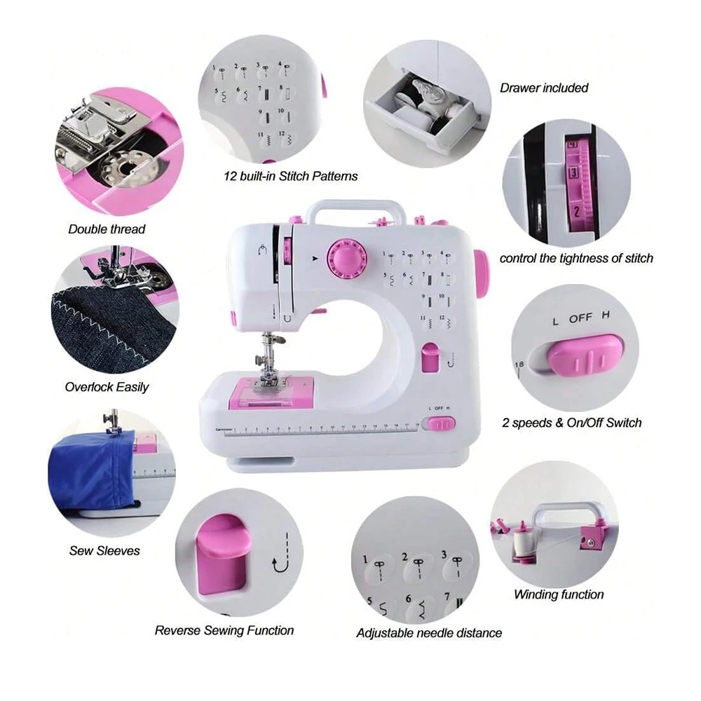 Nähmaschine, 12-Stich-Nähmaschine für den Haushalt, Nähfuß, Overlockmaschinen, elektrisches tragbares Pedal, Kleidungsstich - TopDealBox