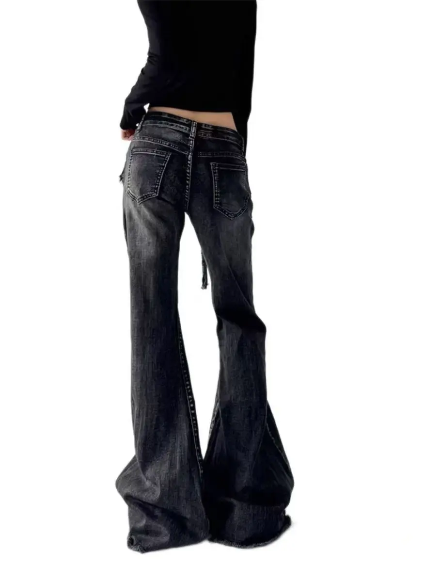 ♡SchnellansichtRetro neue reine schwarze Nieten-Design-Gürtel dekorative dünne Hosen für Frauen y2k Harajuku Goth Low-Waist-Schlaghosen23.79 EUREUR 43.95Heiß★★★★★★4.9
