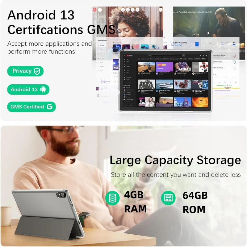 Neues 10,1-Zoll-Android 13-Tablet RK3562 Quad-Core 4 GB RAM 64 GB ROM 1280 x 800 IPS Dual-Kamera Typ C 6000 mAh - TopDealBox