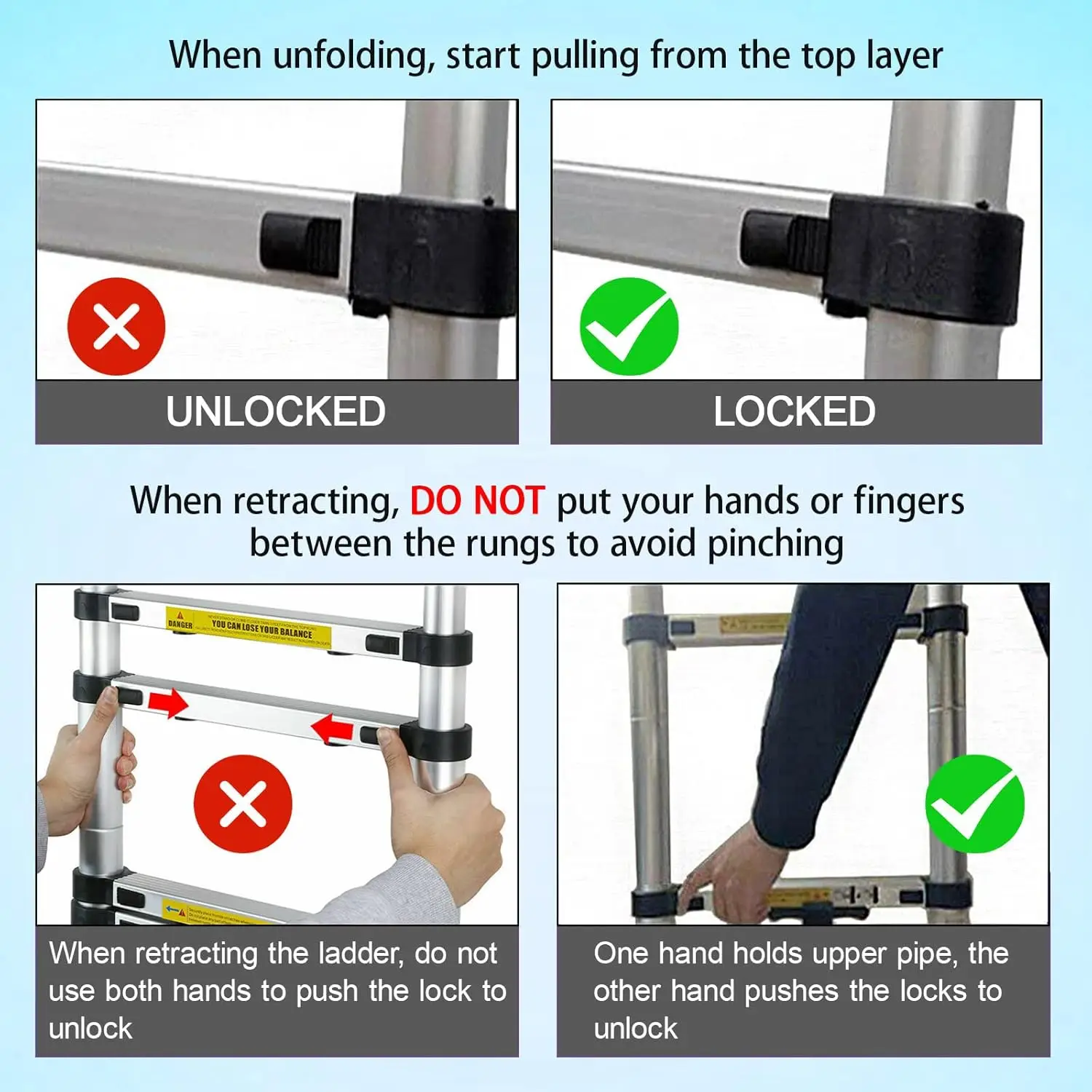 ♡SchnellansichtSucceBuy Teleskopleiter, 12,5 Fuß Aluminium, Ein-Knopf-Rückzug, zusammenklappbare Verlängerung, 375 Pfund Kapazität mit rutschfestem Gehäuse für Wohnmobile zu Hause76.39 EUREUR 197.80Heiß★★★★★★4.9