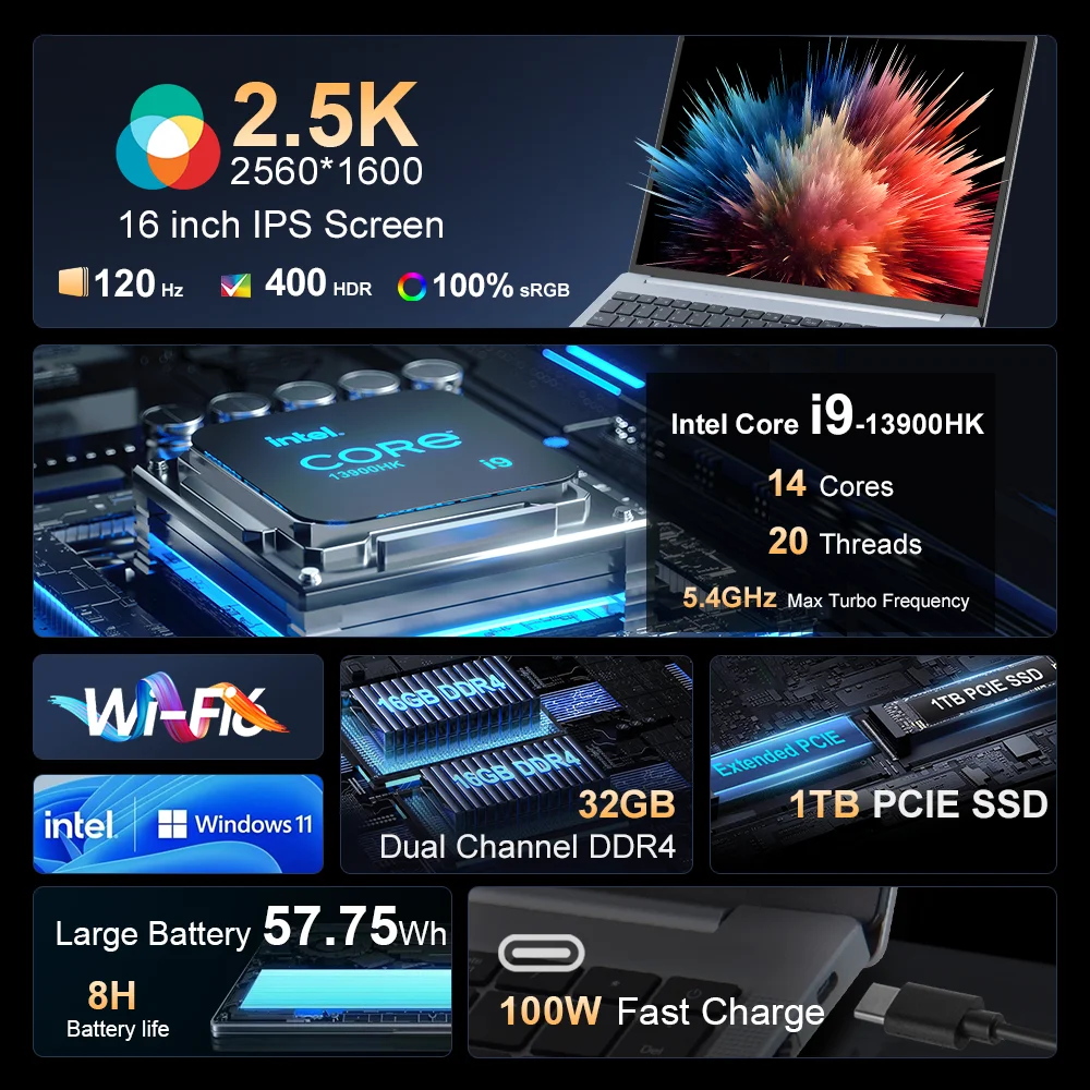 ↑Ninkear Gaming-Laptop N16 Pro 16-Zoll Intel Core i9-13900HK 14 Kerne 20 Threads Bis zu 5,4 GHz 32 GB Dual Channel DDR4+1 TB PCIE SSD 2,5 K Ultra HD IPS 120 Hz Aktualisierung 0,3 s Fingerabdruck-Entsperrung Hohe Leistung - TopDealBoxMehr aus dieser Kategorie