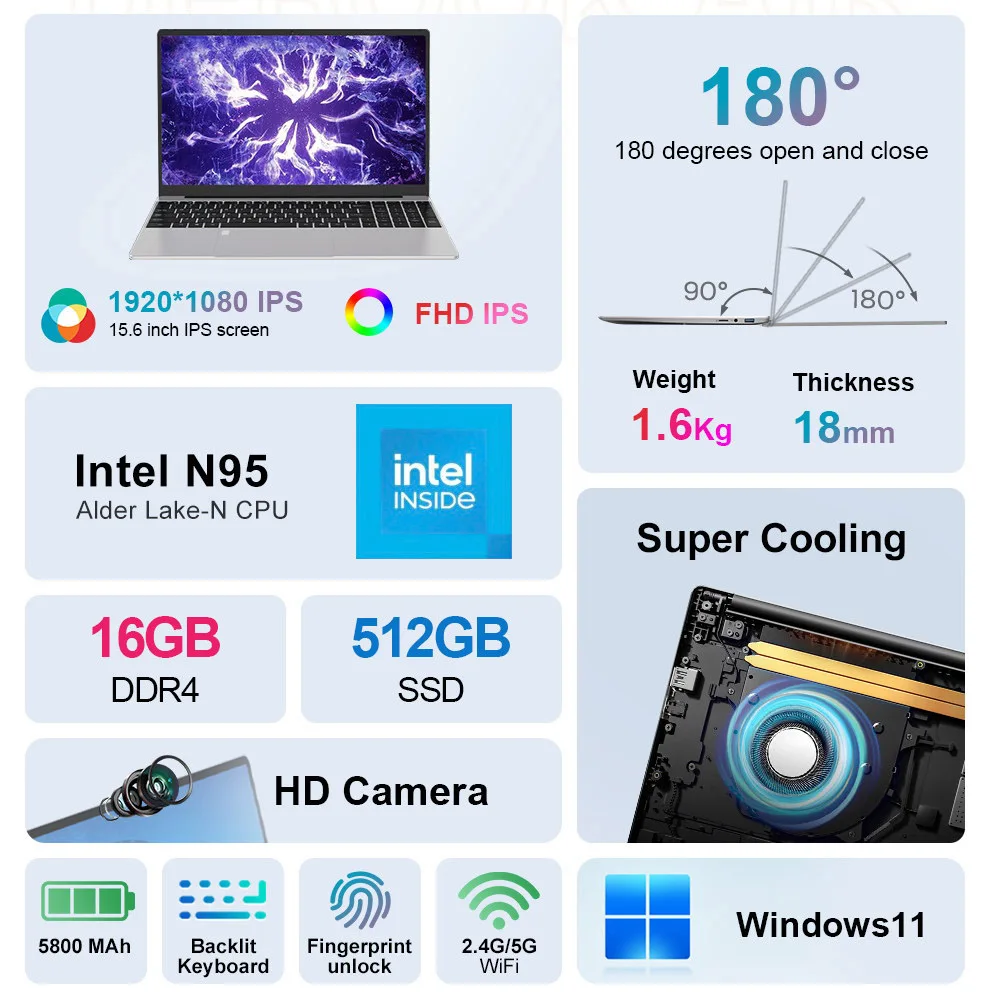 ♡SchnellansichtTeclast f16pro Laptop 15,6 Zoll, 16GB RAM 512GB SSD-Computer, für Intel N95 CPU, IP FHD 1080p Bildschirm, WLAN 6, BT 5.0, USB3.2, Tastatur mit Hintergrund beleuchtung, 38000mwh191.38 EUREUR 439.96Heiß★★★★★★4.9