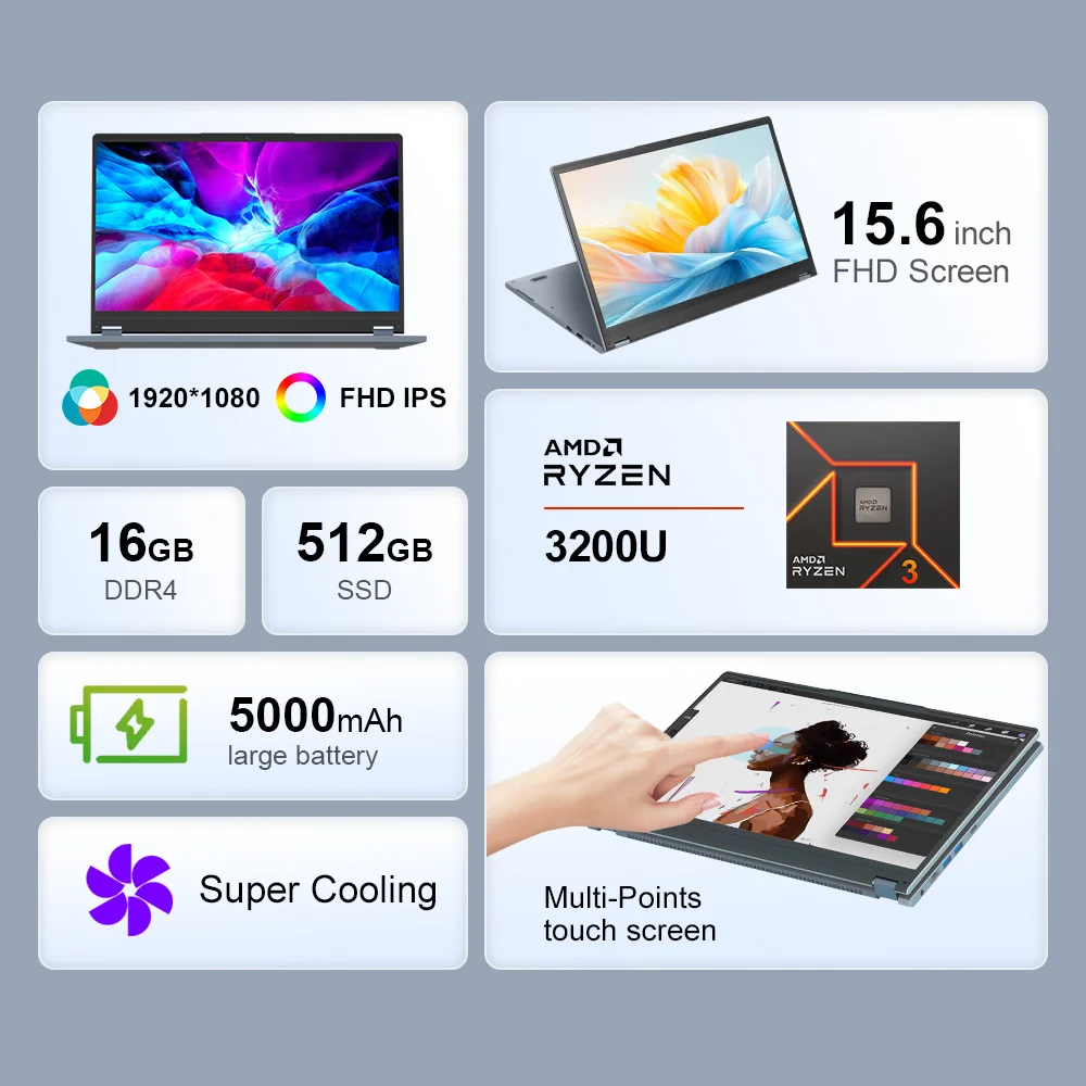 ↑Ninkear ybook15 2-in-1-Laptop 360 ° Flip 15,6 Zoll 1920*1080 Touchscreen und Ryzen 3 3200u 2 Kerne max 3,5 GHz 16GB RAM 512GB SSD - TopDealBoxMehr aus dieser Kategorie