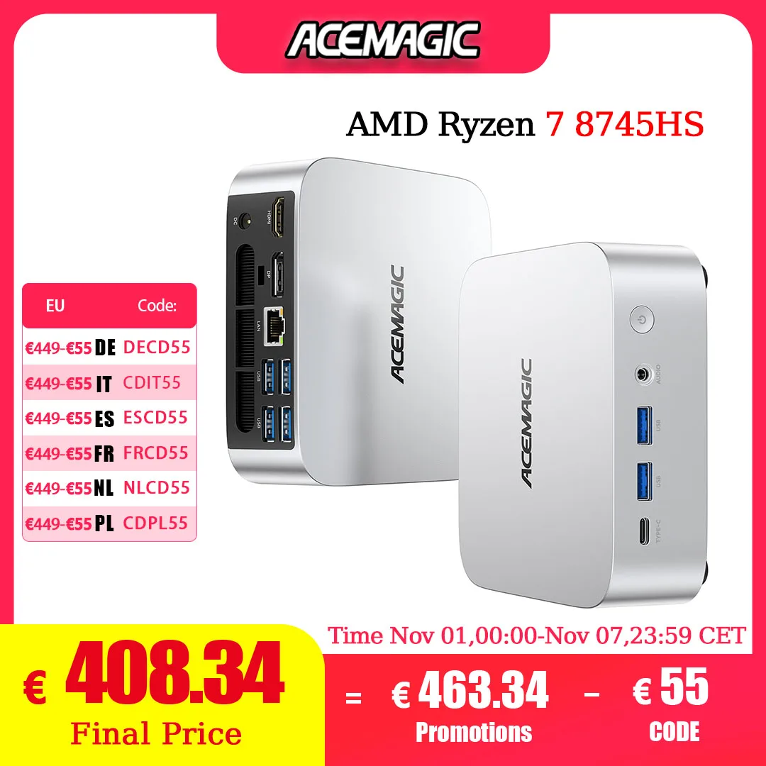 ♡SchnellansichtACEMAGIC W1 Mini-Gaming-PC AMD Ryzen 7 8745HS Mini-Computer 4K Triple Display Mini-Desktop-Computer BT5.2/WiFi 6/Dual Channel467.35 EUREUR 1391.41Heiß