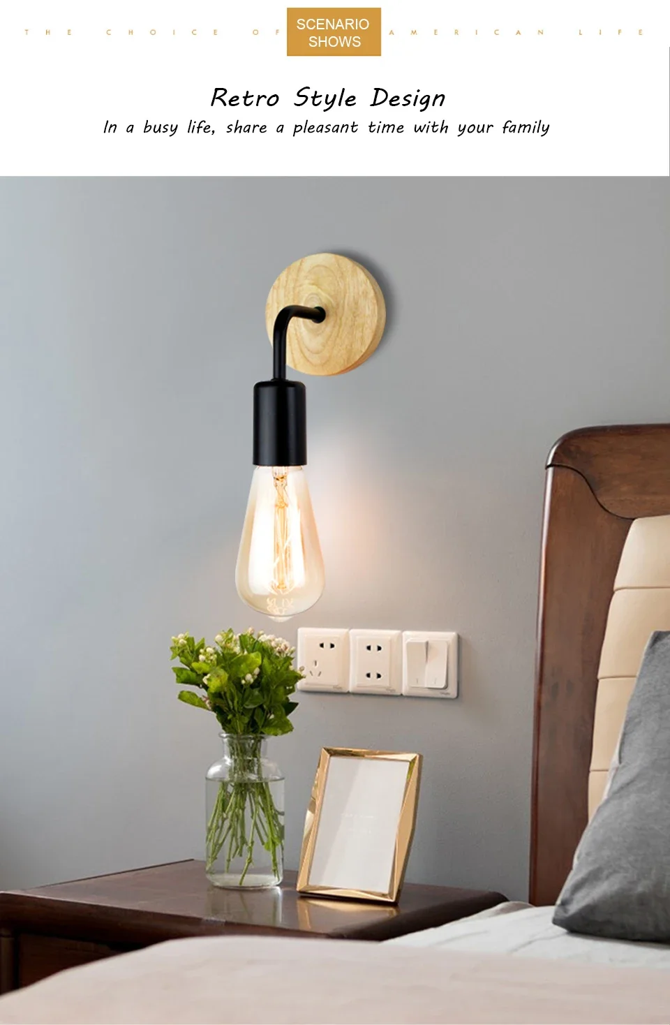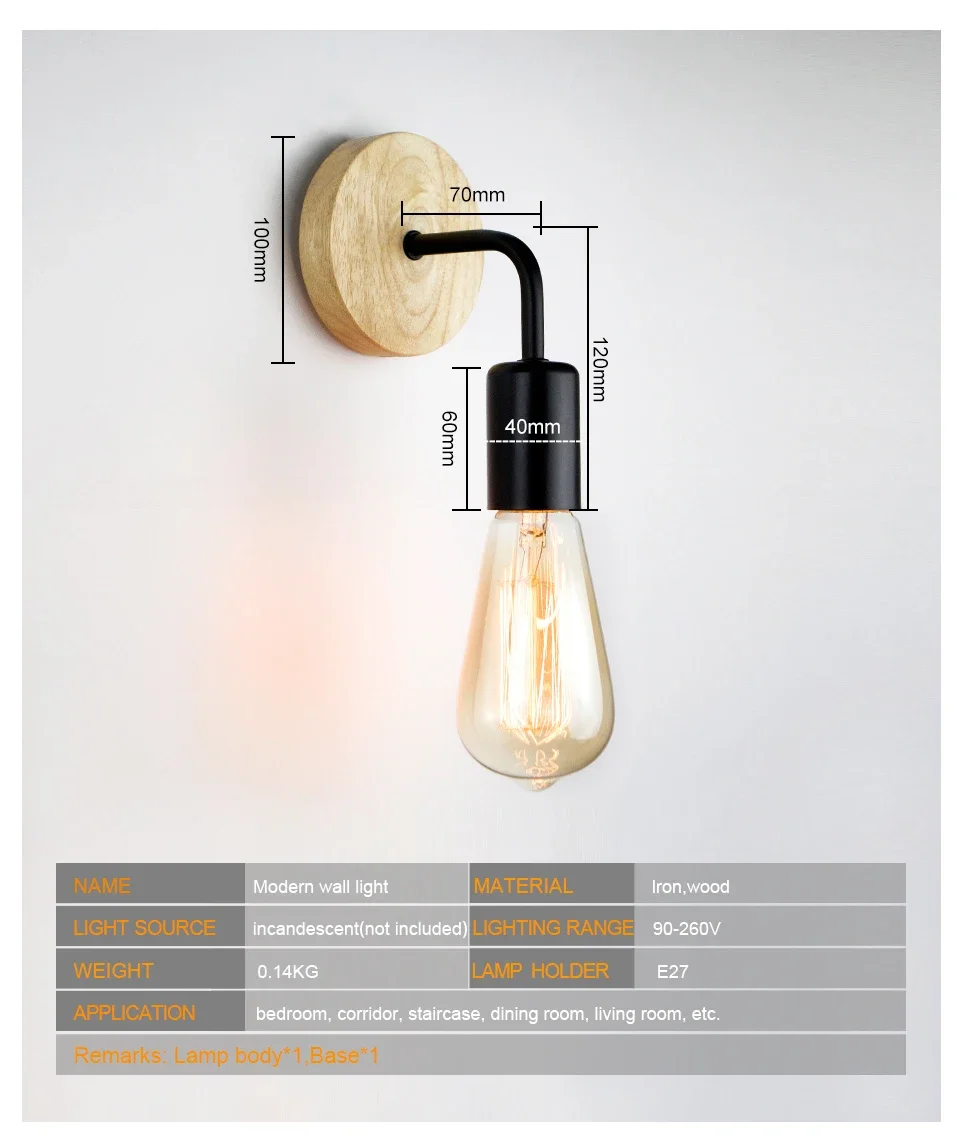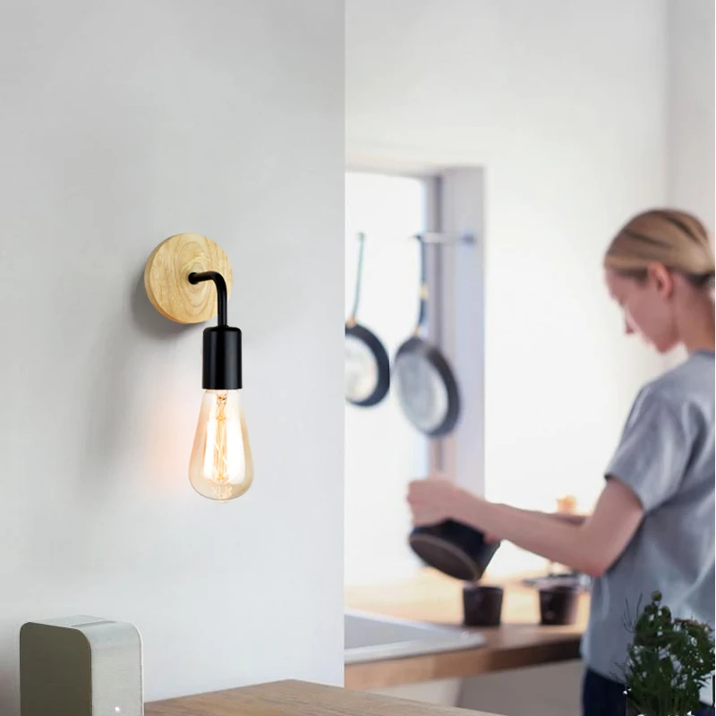 Nordic Holz Wand Lampen E27 220V 110V Vintage Leuchte Wand Lichter Leuchte Retro Nacht Lampen Dekoration Esszimmer schlafzimmer Licht - TopDealBox