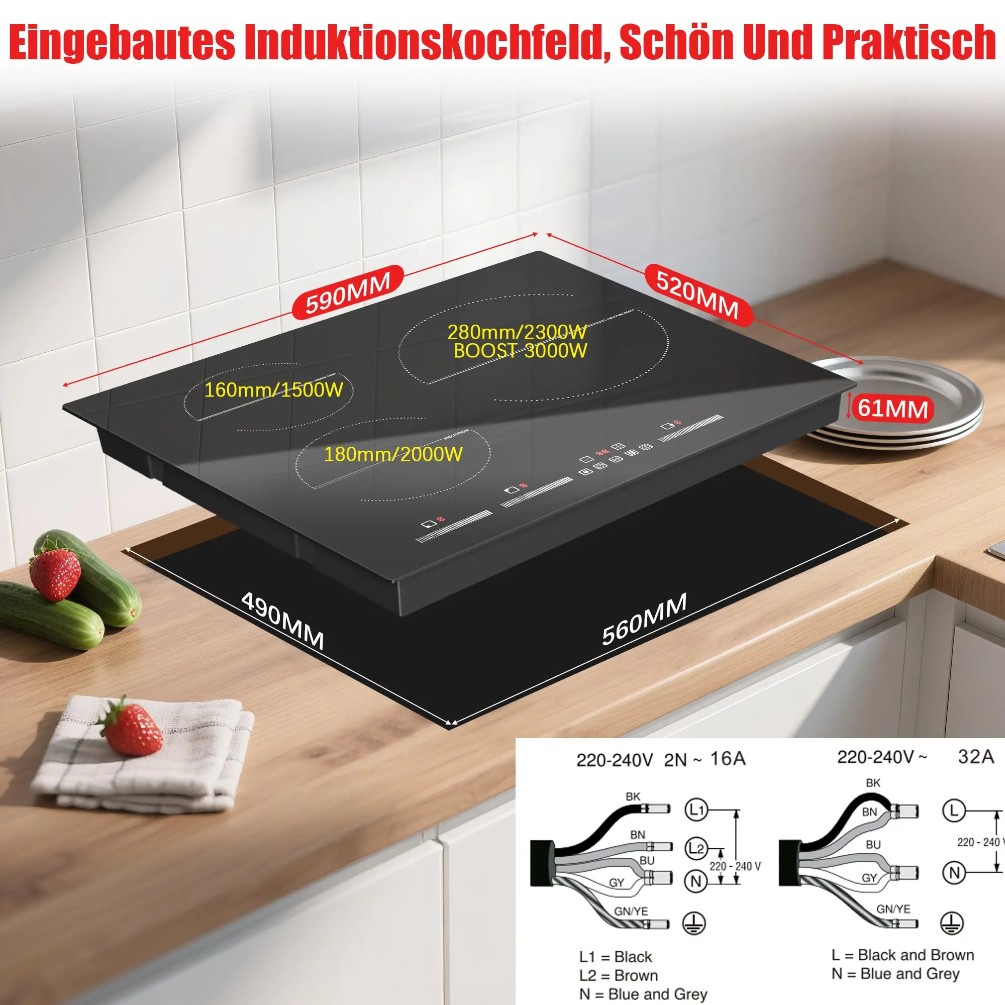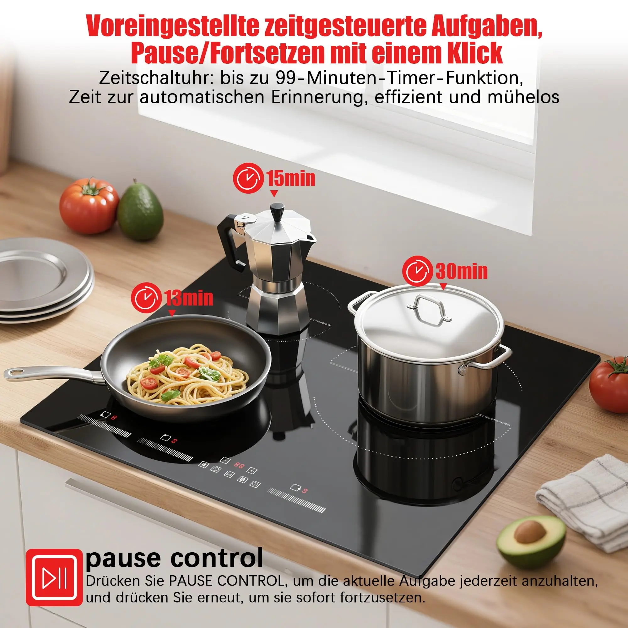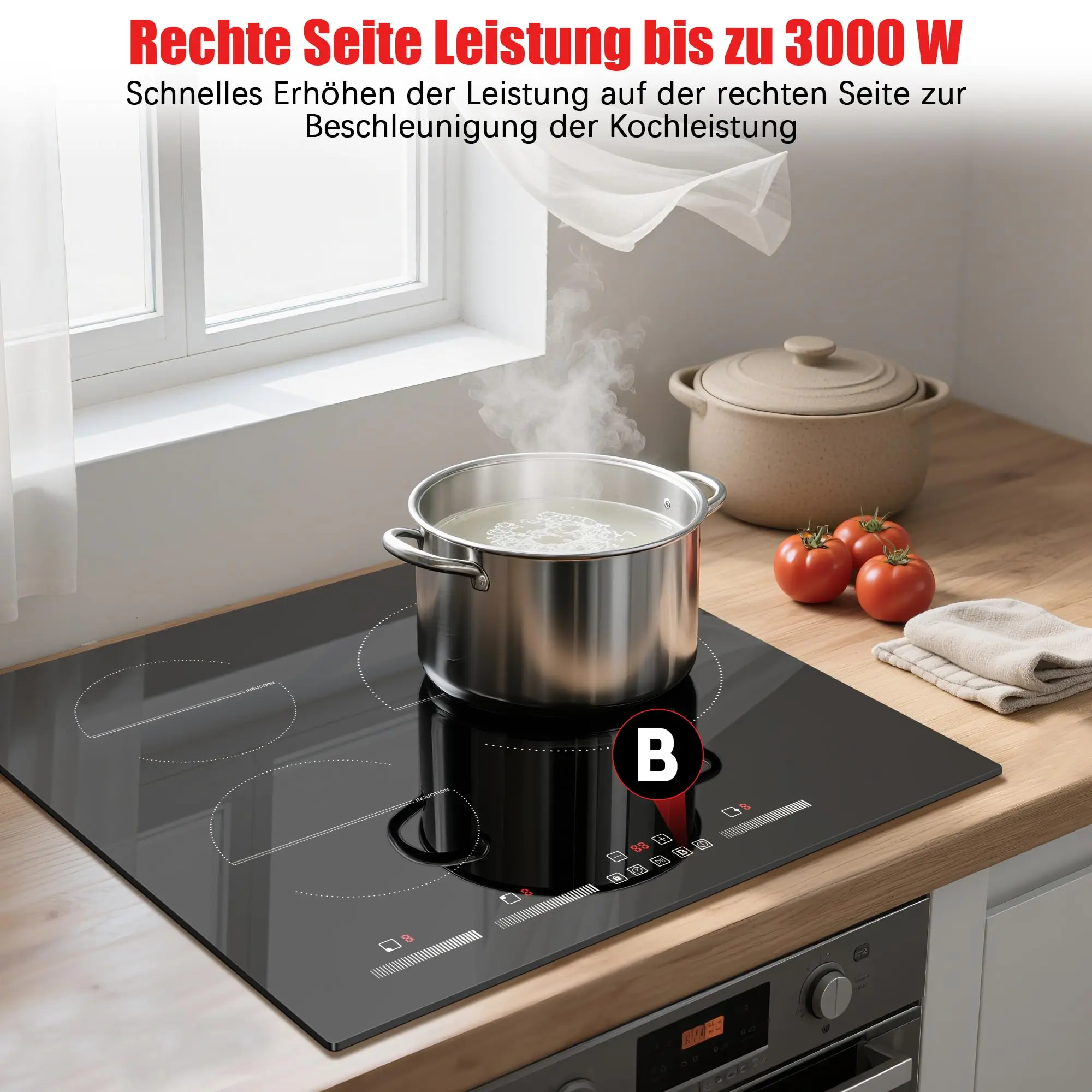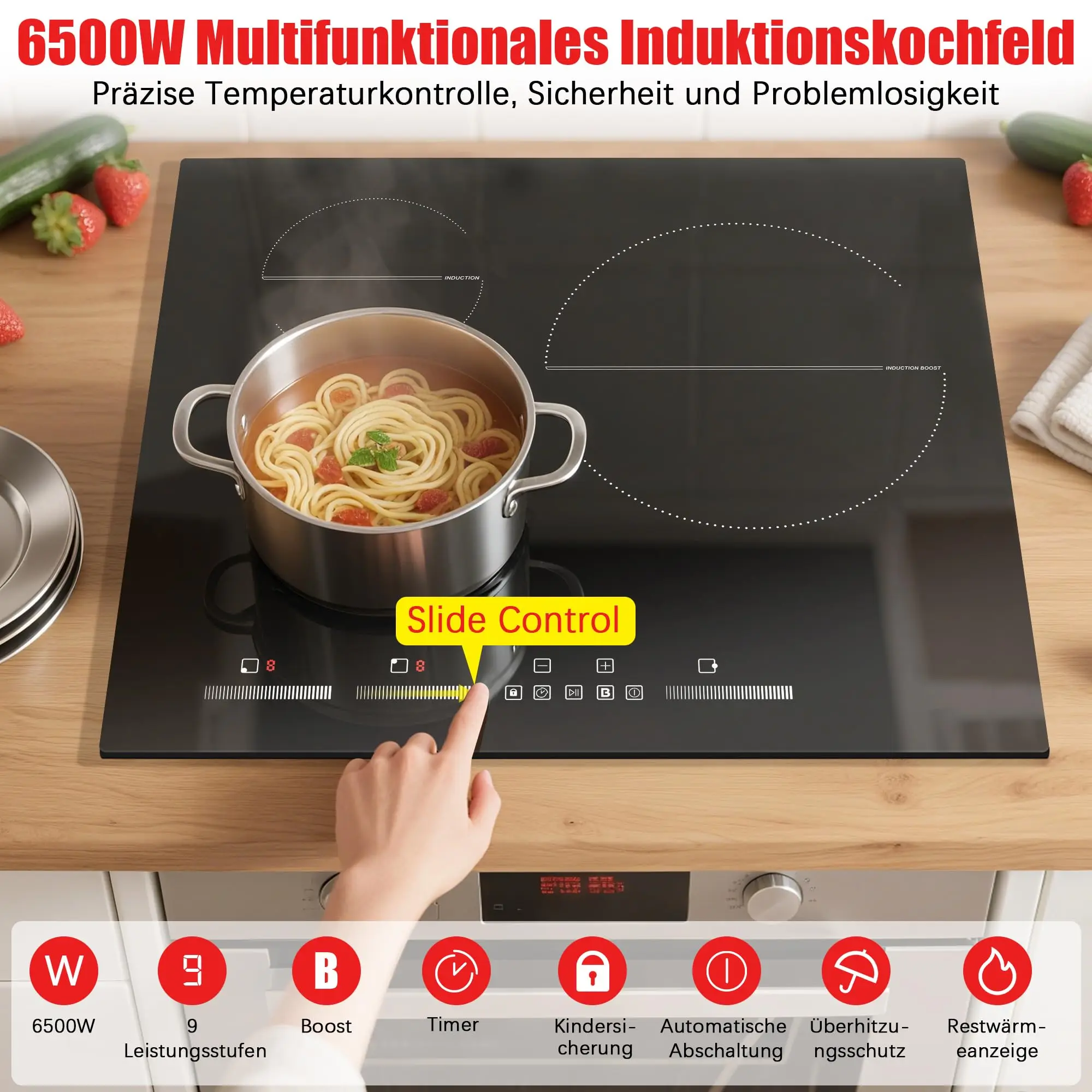 NOXTON Induktionskochfeld 60 cm, Installation mit Booster, selbst ausreichendes Induktionskochfeld, 3 Platten mit Schieber, 220–240 V, 6500 W, Nr - TopDealBox