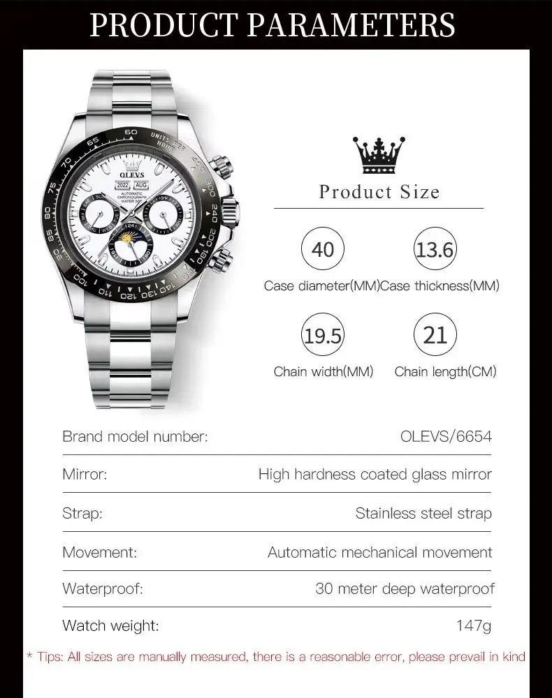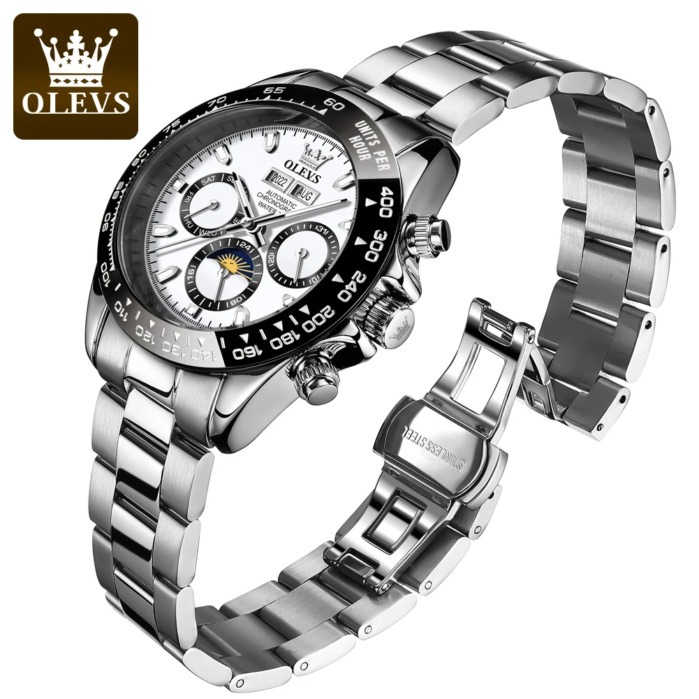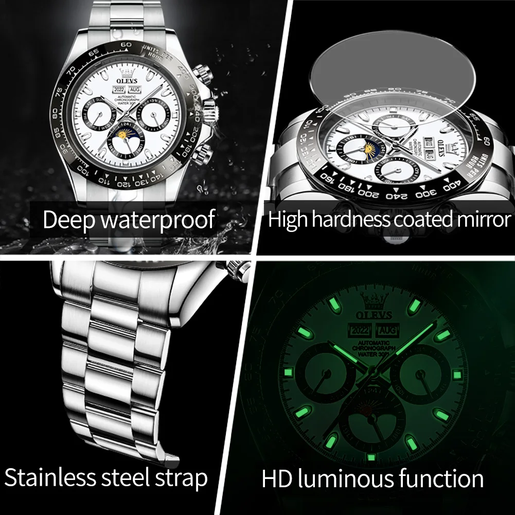 OLEVS 6654 Luxus Marke Automatische Mechanische Uhr für Männer 30 m Wasserdicht Leucht Chrono Mond Phase Kalender Original Mann uhr - TopDealBox