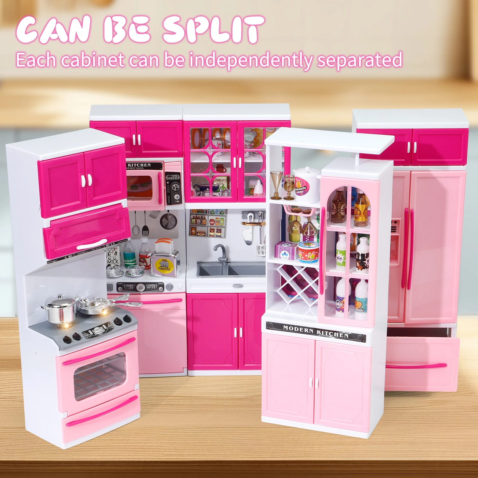 Pink Kitchen Combo Rollenspiel 5-teiliges Spielzeugset mit Lichtern und Geräuschen, für Mädchen, Weihnachten/Halloween/Thanksgiving/Neujahr - TopDealBox
