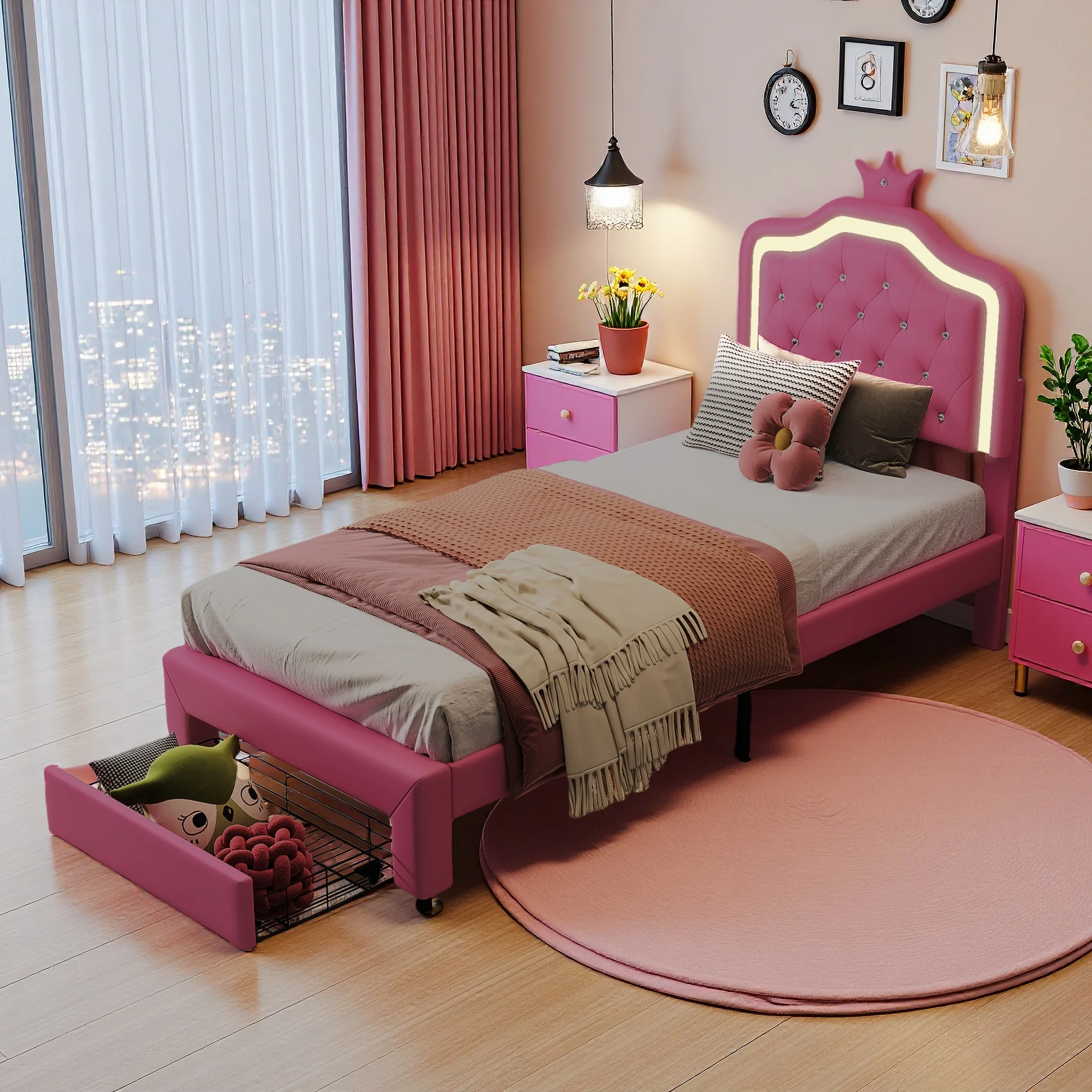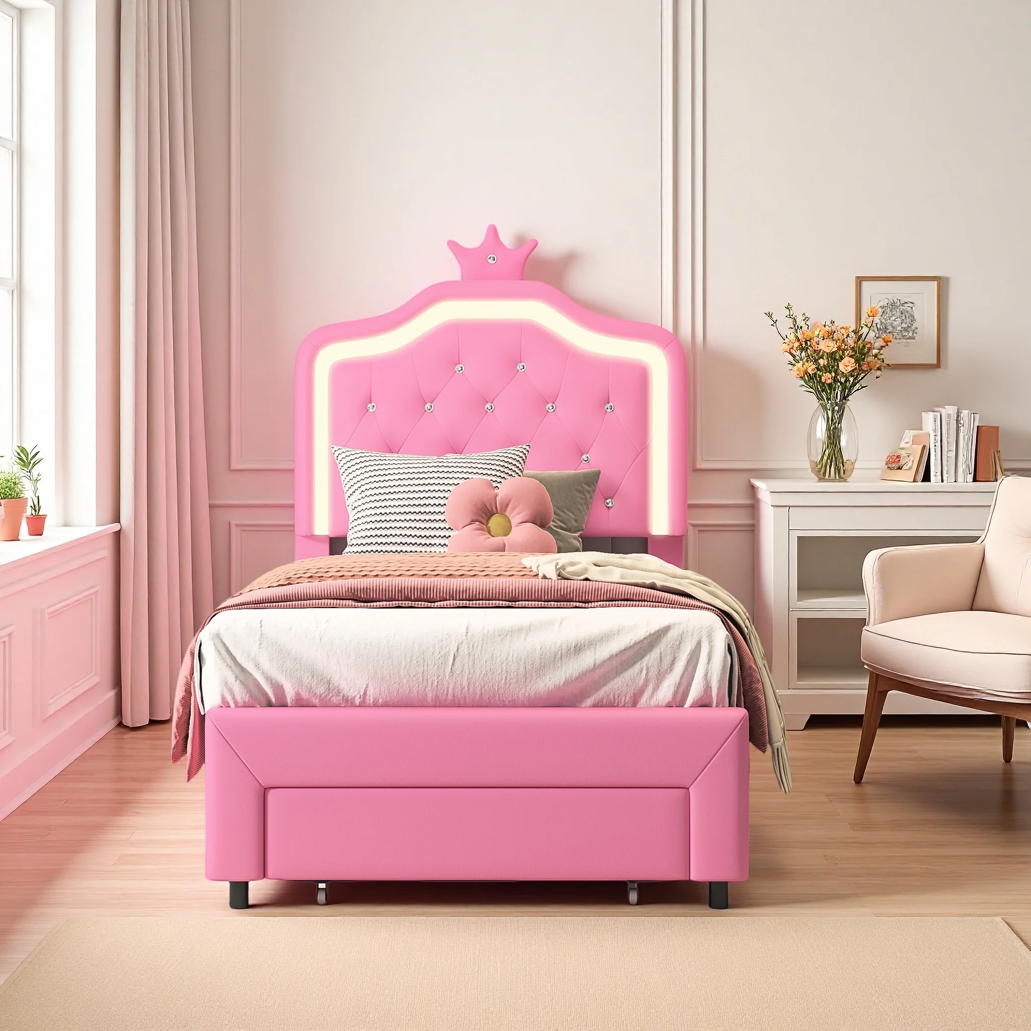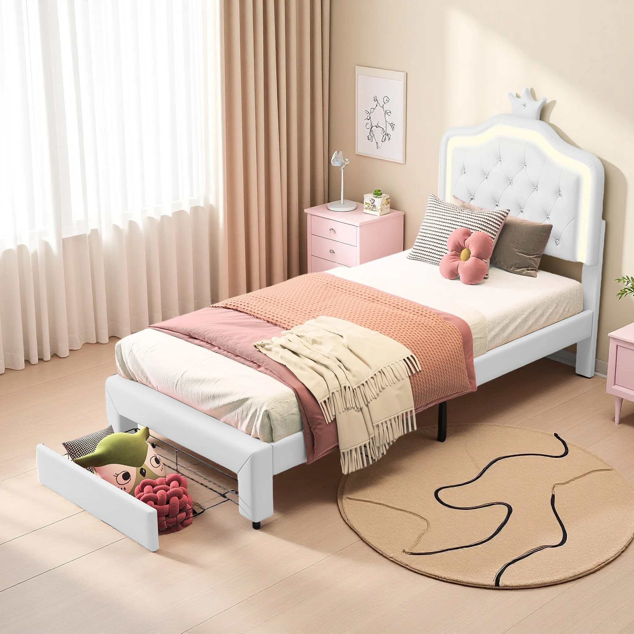 ♡SchnellansichtRosahqnda Kinderbett Einzelbett 90/140x200cm Mädchenbett mit LED-Beleuchtung, Crown Shell Heabboard Einzelbett Rest ohne Matratze177.96 EUREUR 382.30Heiß★★★★★★4.9