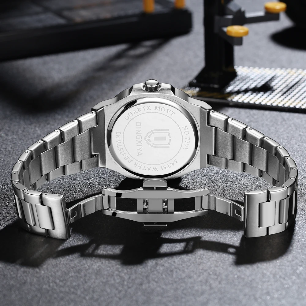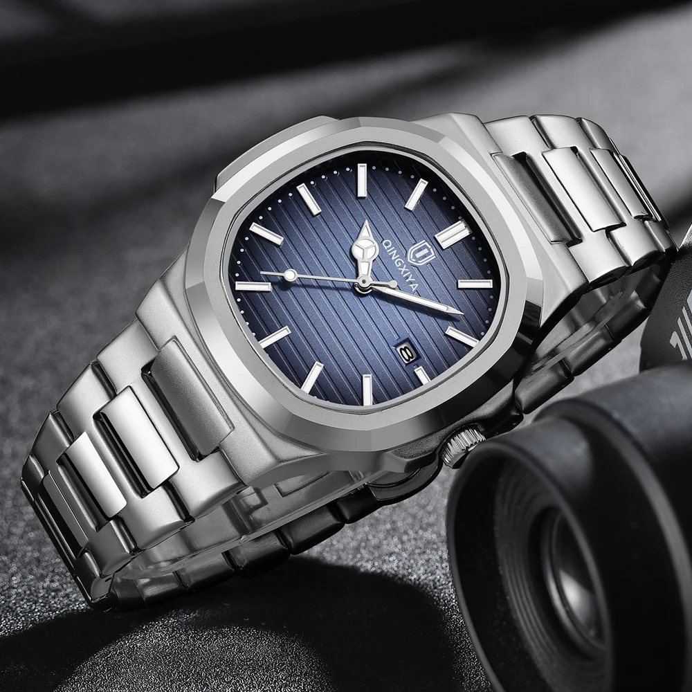 QINGXIYA Neue Luxus Quadrat Quarzuhr Wasserdicht Business Männlich Uhr Mode Leucht Datum Edelstahl Männer Uhr reloj - TopDealBox