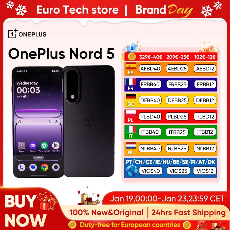 ♡SchnellansichtNeues OnePlus Nord 5-Smartphone 5G Snapdragon ™ 8s Gen 3 6,83 Zoll AMOLED-Display 144 Hz 6800 mAh 80 W SUPERVOOC 50 MP Dual-Kameras415.42 EUREUR 986.74Heiß★★★★★★4.9