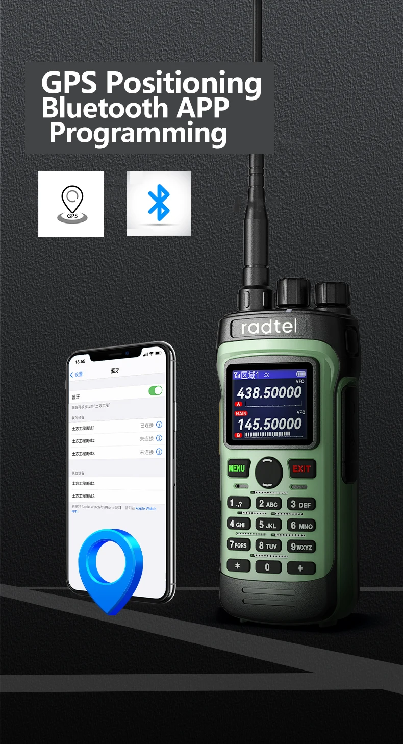 Radtel RT-330 gps bluetooth app programmierung amateur radio 10w power full band 136-520mhz tx rx luftfahrt frequenz empfangen noaa - TopDealBox