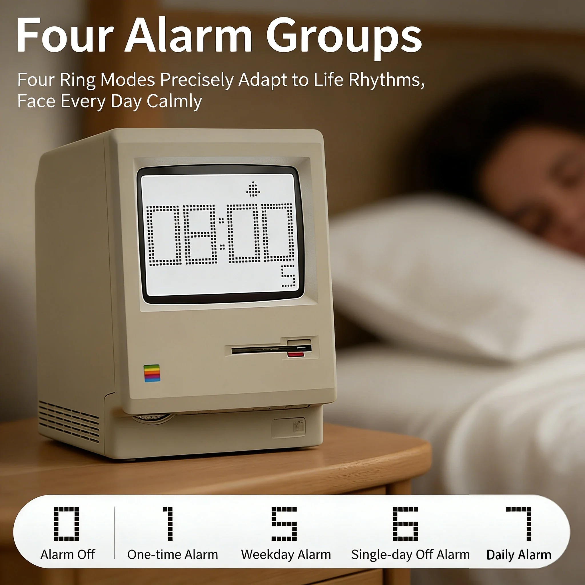 Retro-Digitalwecker, 60 Tage Akku, Macintosh-Stil, USB wiederaufladbar, 12 Helligkeitsstufen, Unterhaltungselektronik - TopDealBox