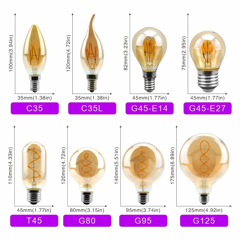 ♡SchnellansichtLED Retro Edison Glühbirne E14 E27 AC 220V 2W 4W 6W 8W Vintage Glas Lampe C35 G45 A60 ST64 G80 G95 G125 Led Filament Licht Wohnkultur1.19 EUREUR 19.10Heiß★★★★★★4.7