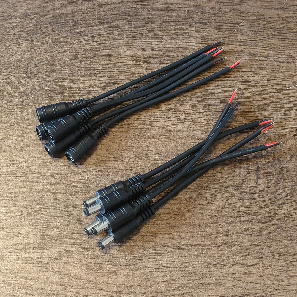 Schwarzes 15 cm DC-Kabel, 5,5 x 2,1 mm DC-Stecker, Klinkenstecker, Draht, Pigtail, männlich, weiblich, 5,5 x 2,1 Adapter für 5050 3528 LED-Streifen - TopDealBox