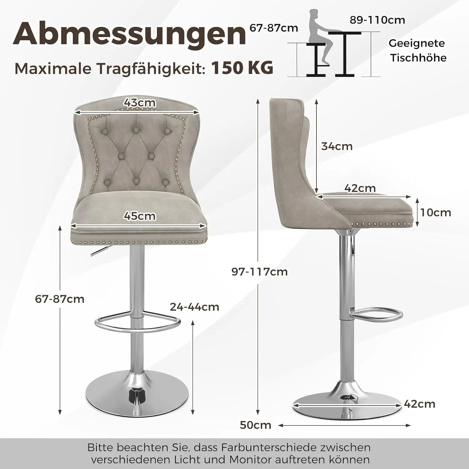 ♡SchnellansichtBarhocker, 2er-Set, Samt-Barstuhl, höhenverstellbar, hoher Küchenhocker, 360° ° Drehbarer Freizeitstuhl Esszimmerstuhl mit Rückenlehne122.69 EUREUR 294.77Heiß★★★★★★4.9