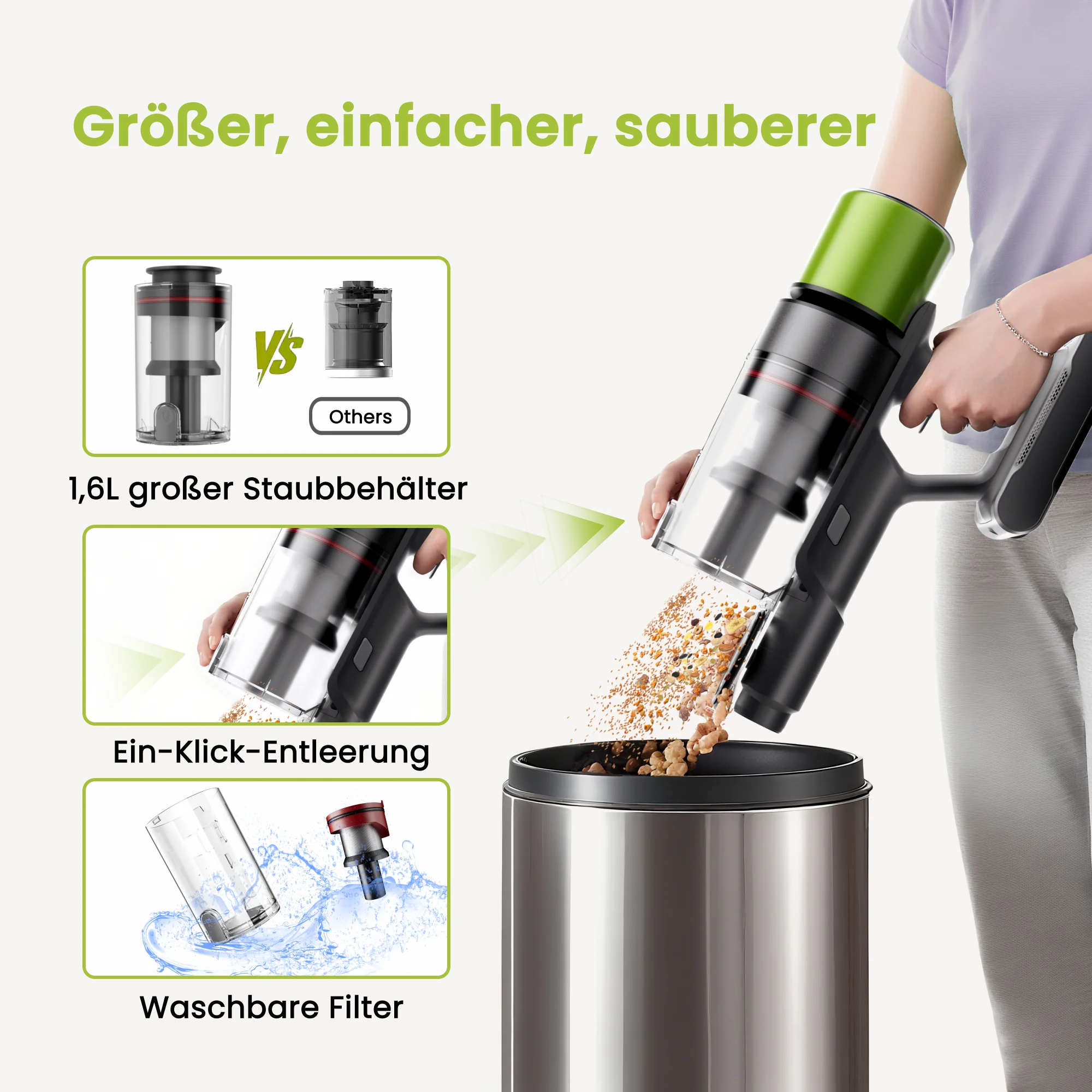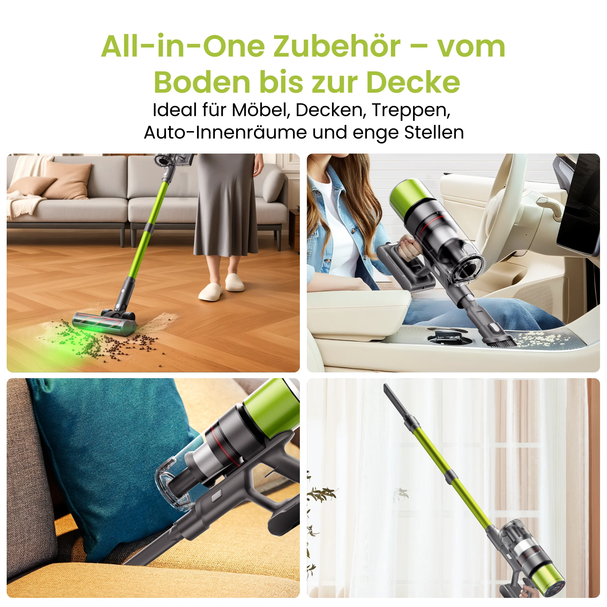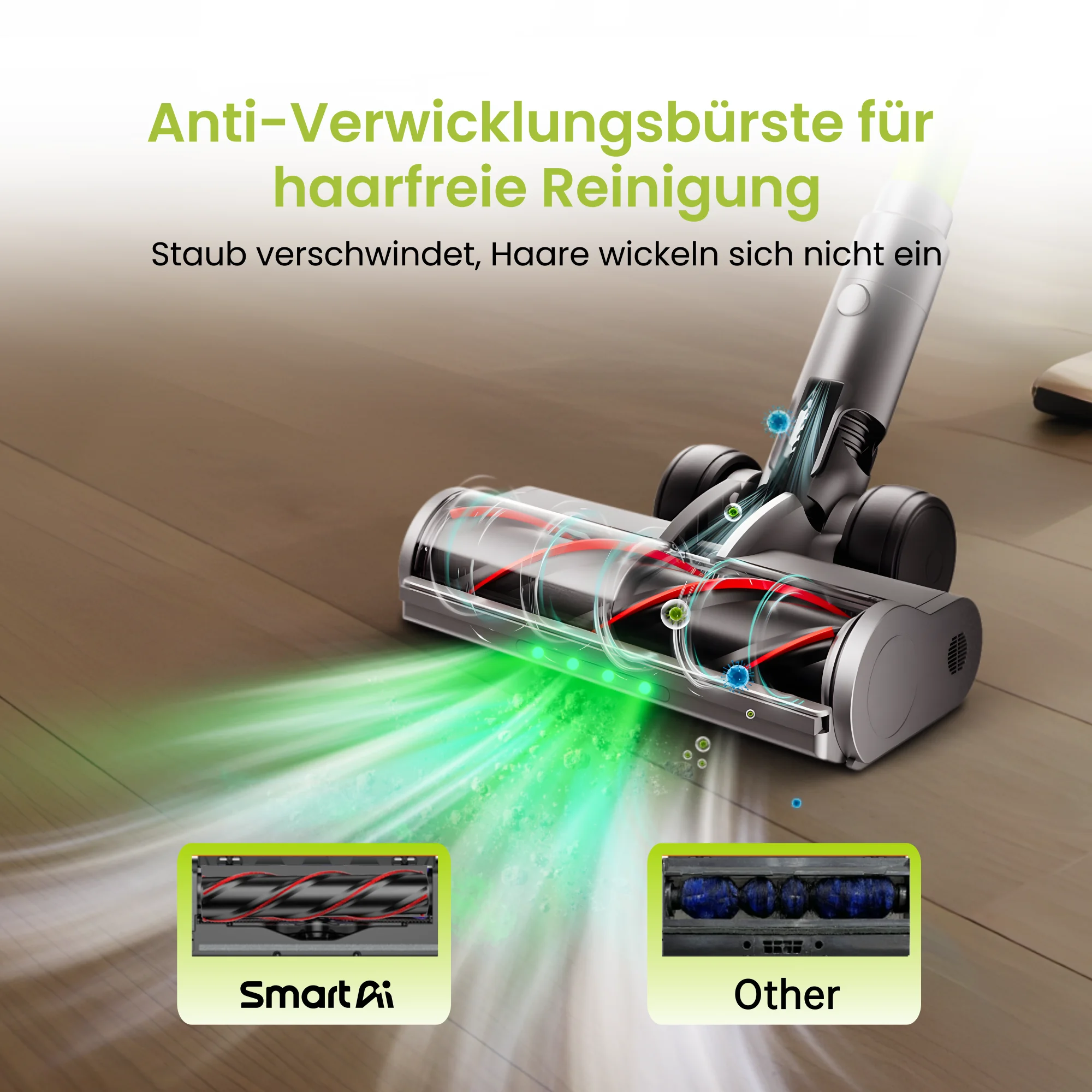 SmartAI V6 Kabelloser Staubsauger, 65KPA 650W Starker Akku-Staubsauger, Bis zu 80 Min Laufzeit, 24000mAh Große Batterie, Anti-Verhedderungs-Bürste, Leichter Multi-Funktions Staubsauger mit HEPA12 Filter, Für Teppich, Hartboden, Tierhaare, Auto - TopDealBox