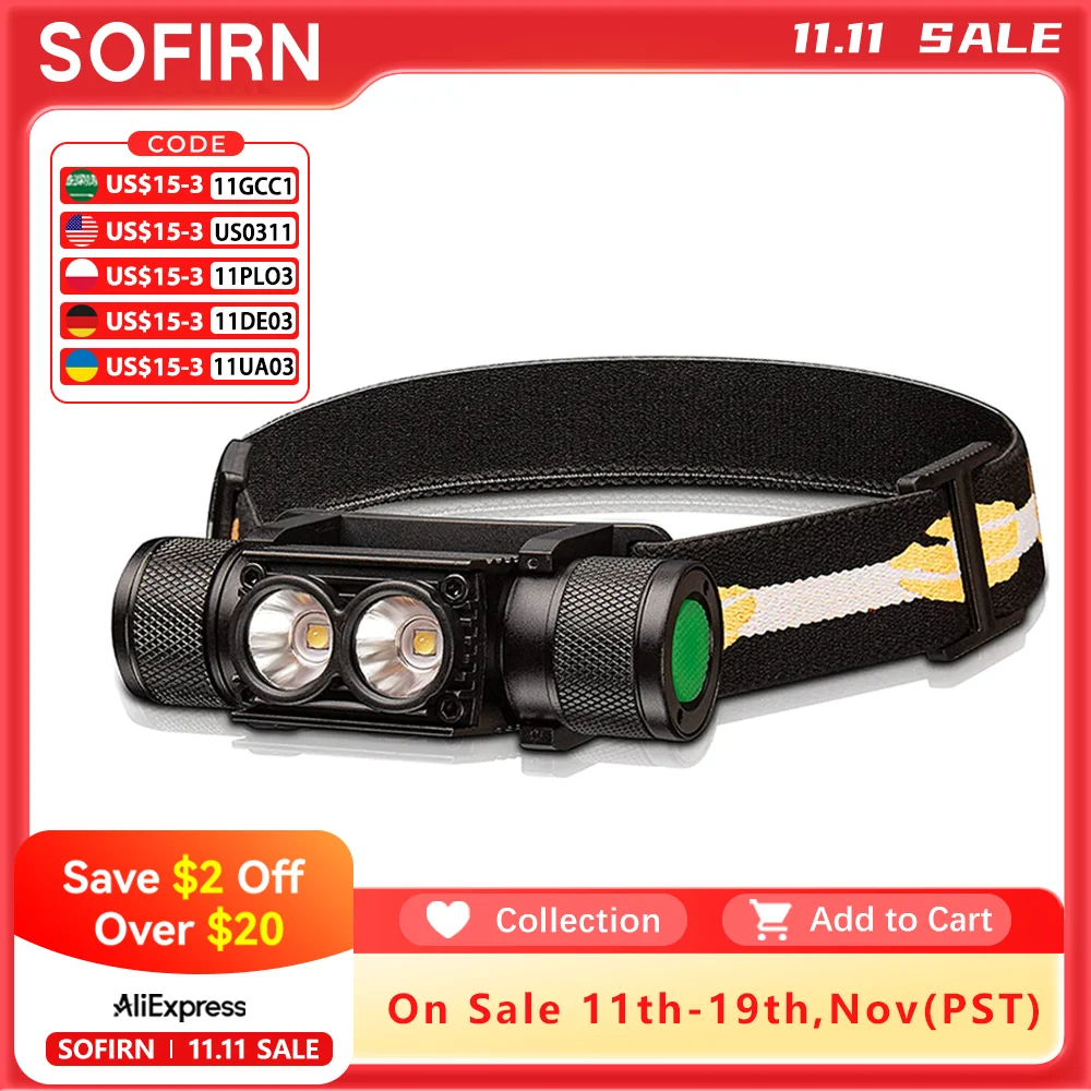♡SchnellansichtSofirn HS10 USB C wiederaufladbare Mini 16340 Stirnlampe 1100 lm LH351D 90 CRI Winkel Taschenlampe TIR Optik mit Magnetschwanz 2 Gruppen21.19 EUREUR 170.93Heiß★★★★★★4.9