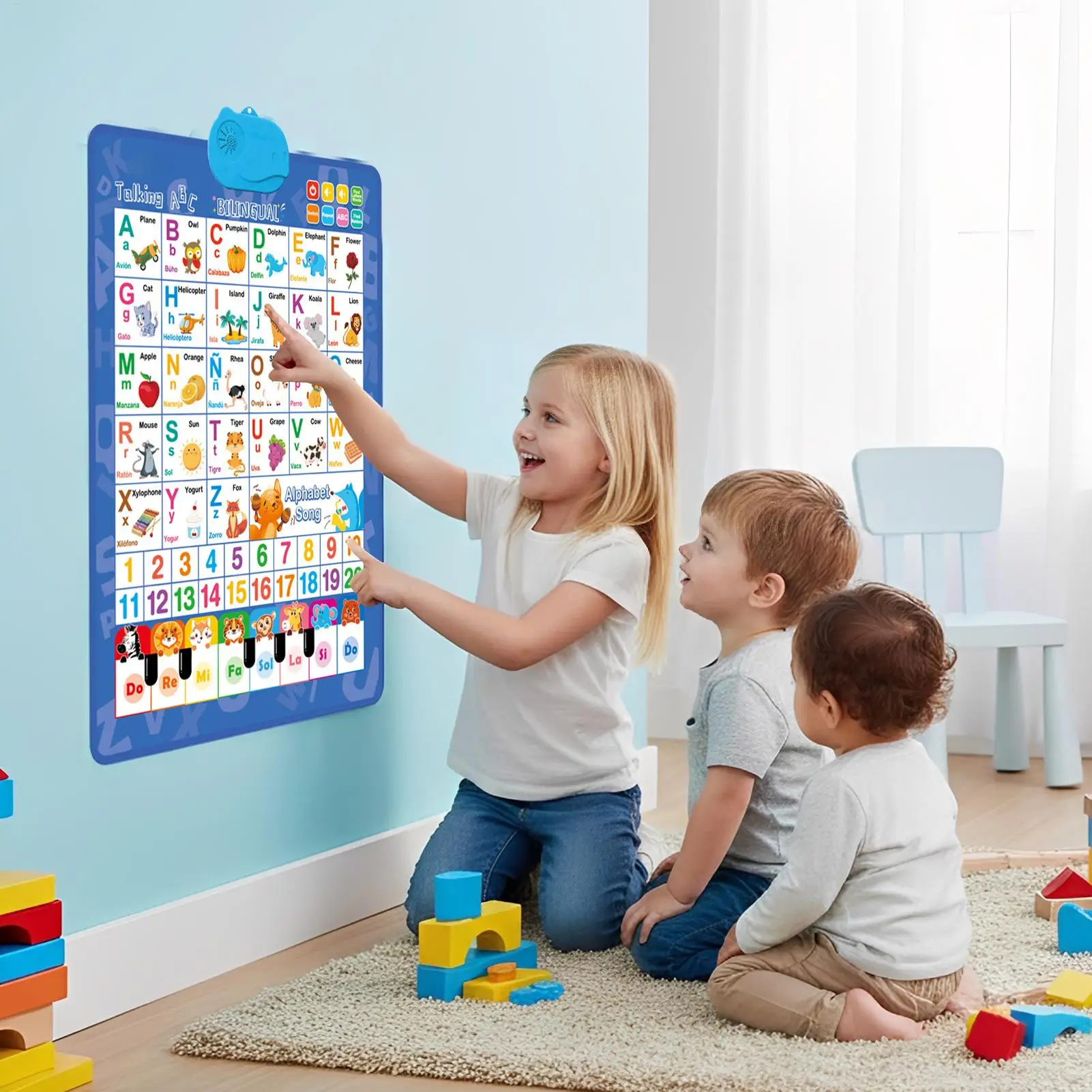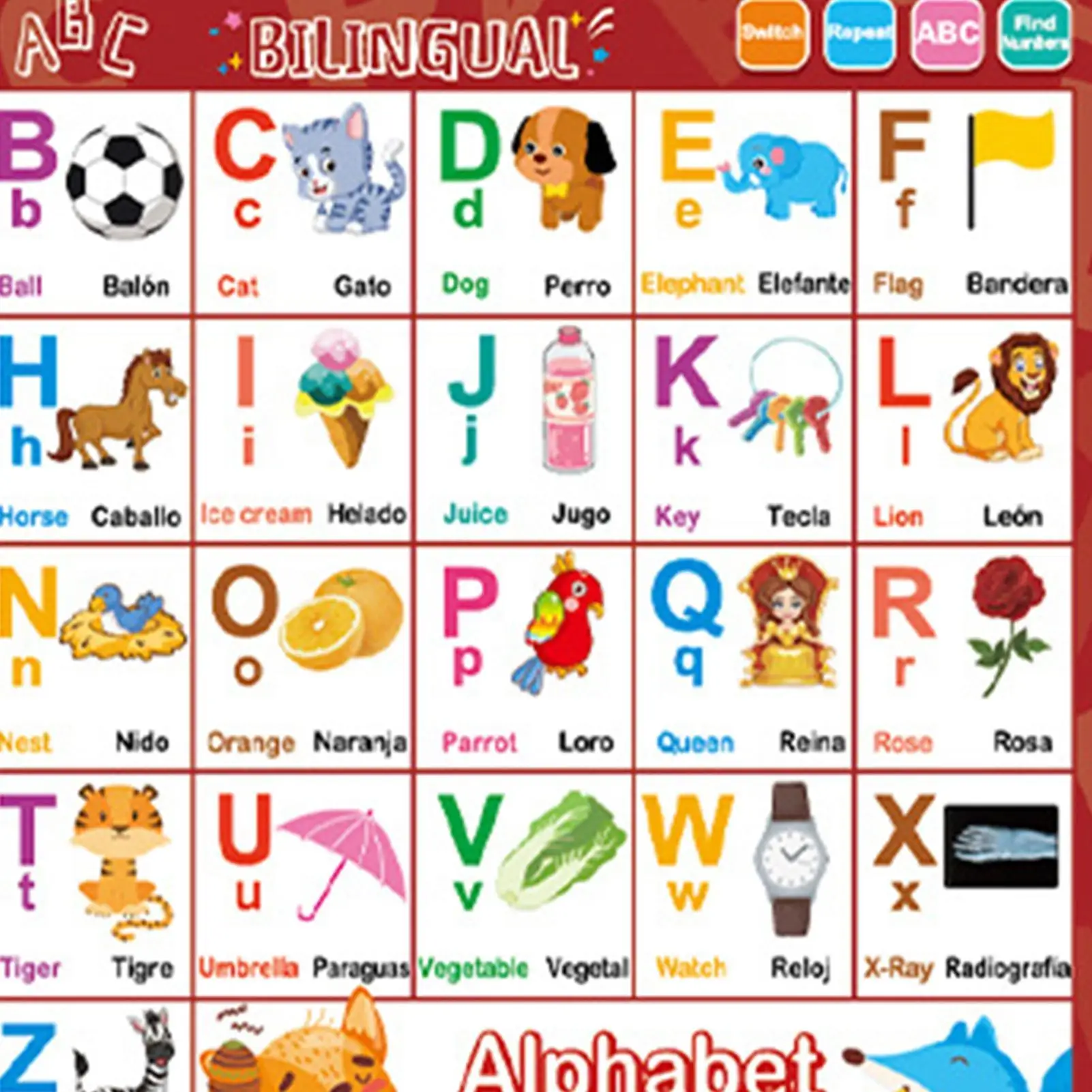 Sprechende Wandtafeln für Kinder, zweisprachige Alphabet-Zahlen, Englisch- und Spanisch-Lernposter mit Musik für Kinder, Jungen, Mädchen, Alter 1–6 - TopDealBox
