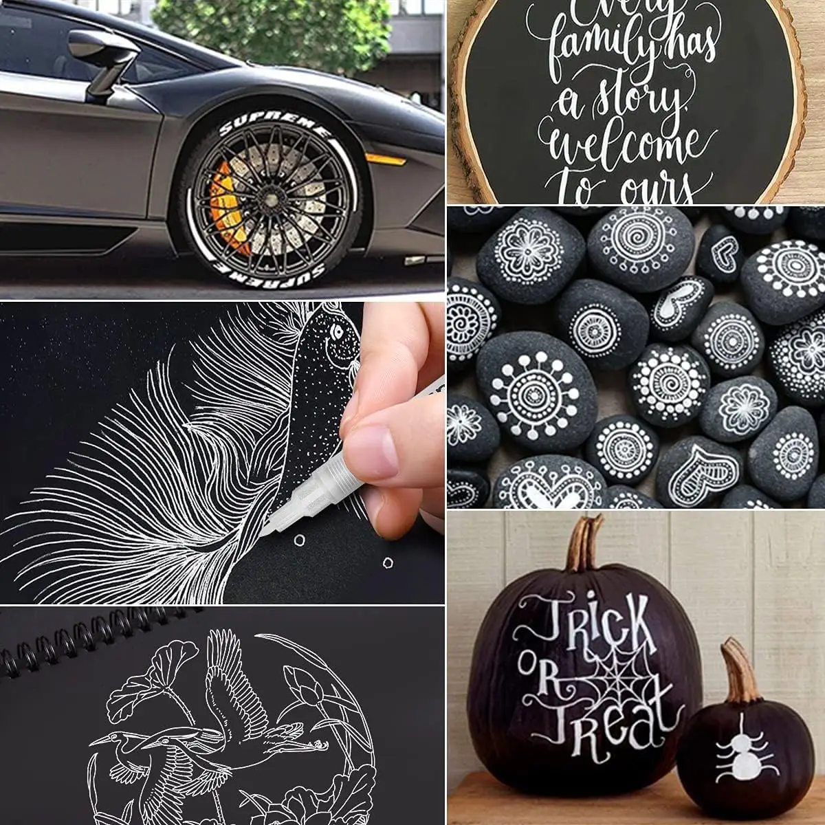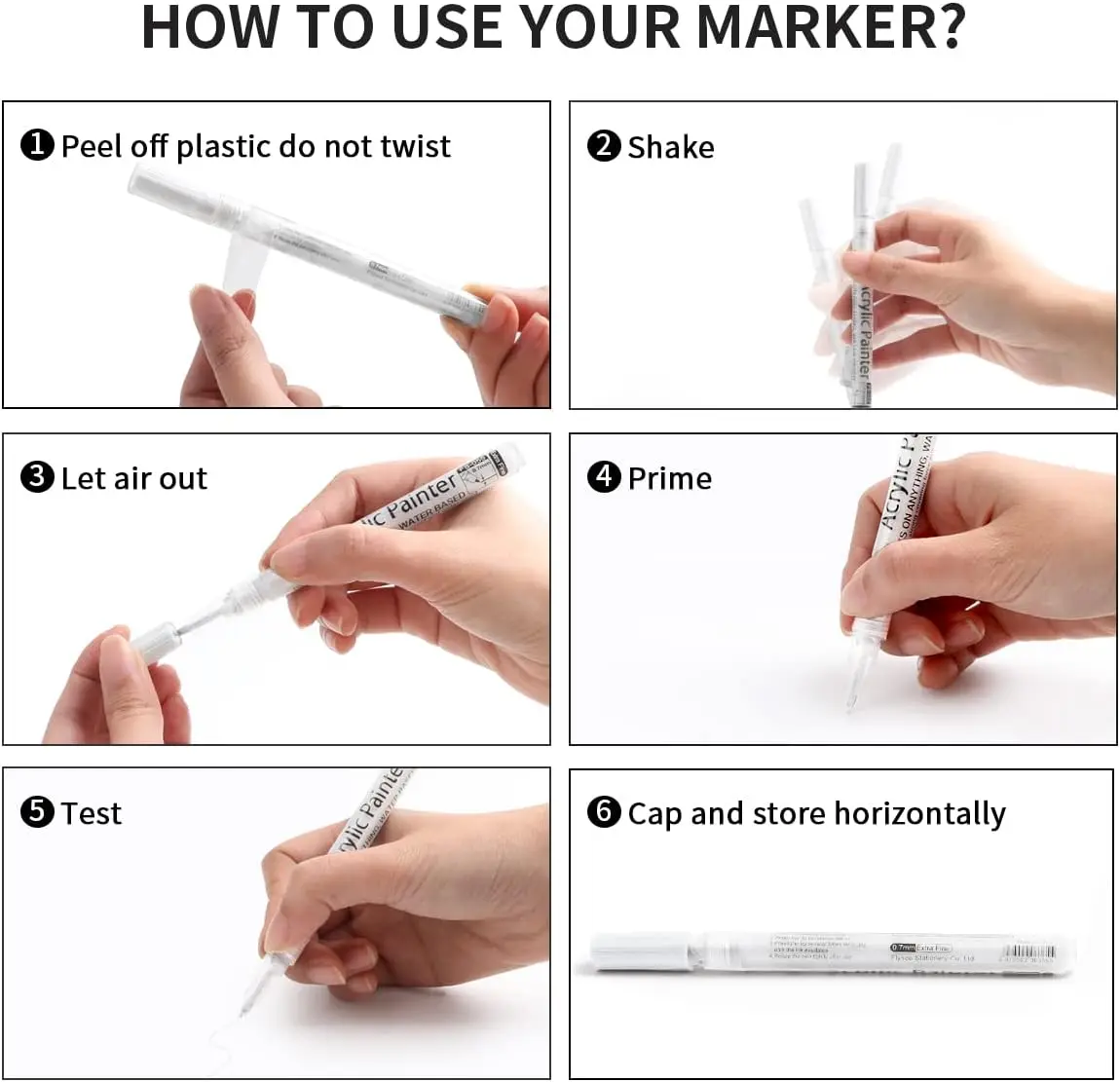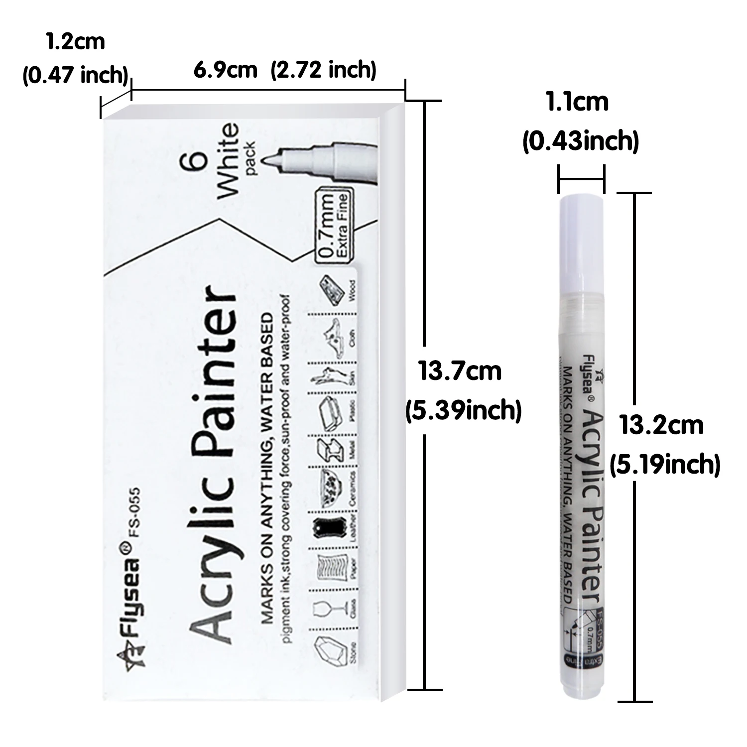 6 Stück/Set weißer Acryl-Farbstift für Felsmalerei, Stein, Keramik, Glas, Holz, Reifen, Stoff, Metall, Leinwand, extrafeine Spitze, weiß - TopDealBox