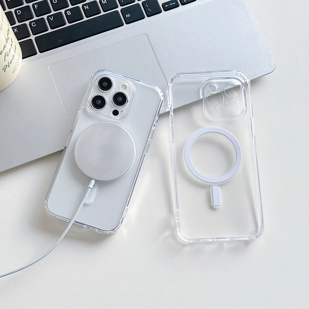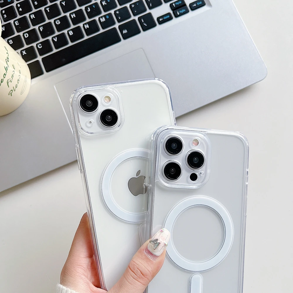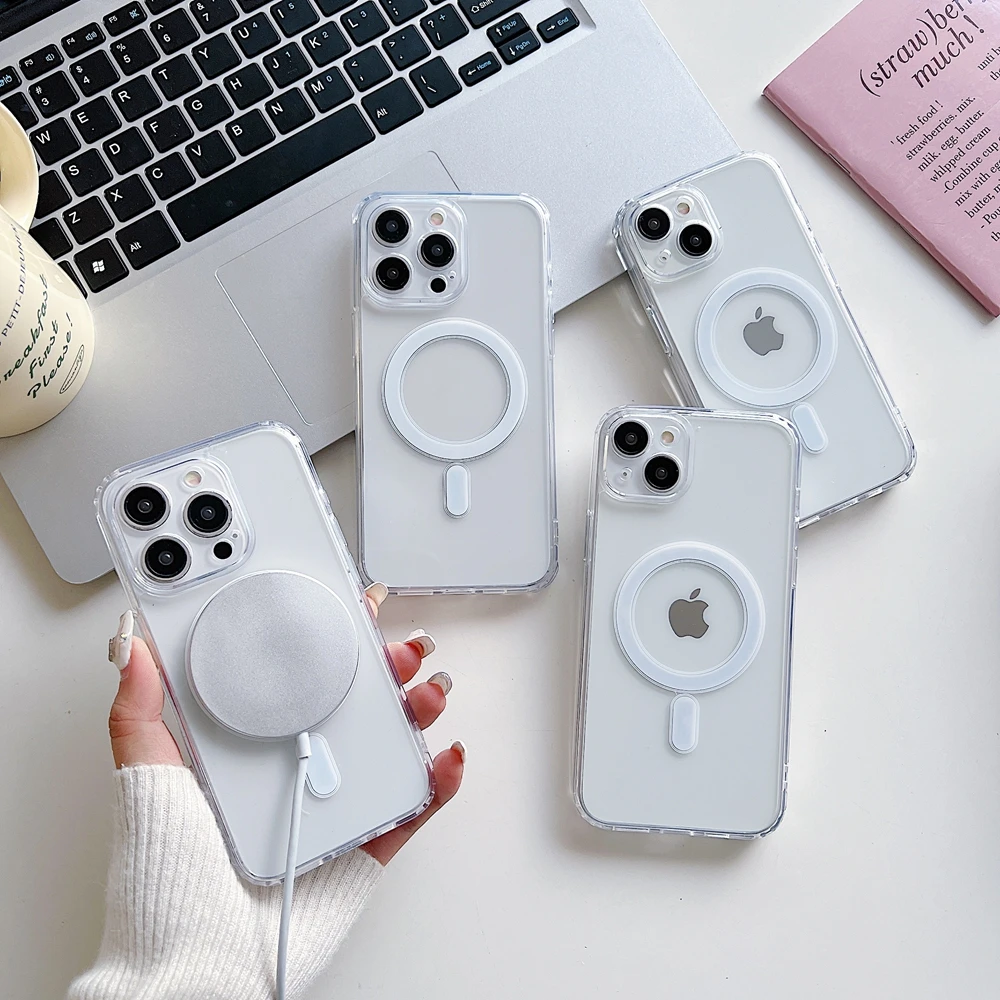 Transparente Handyhülle für iPhone 16, 15, 14, 13, 12, 11 Pro Max/Pro/Plus/Magsafe, magnetische kabellose Lade-Silikonhülle - TopDealBox