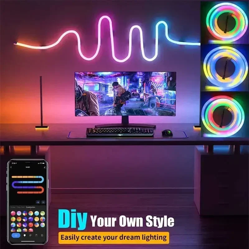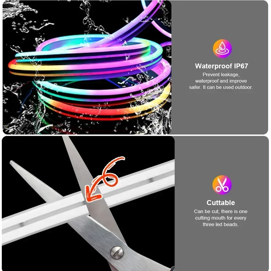 TUYA Neonstreifenlichter, 5–24 V, Silikon-Neonseil, LED-Licht, 84 LEDs/m, mit Musik-Synchronisierung, RGBIC, Dreamcolor Chasing-Streifenband für Zimmer - TopDealBox