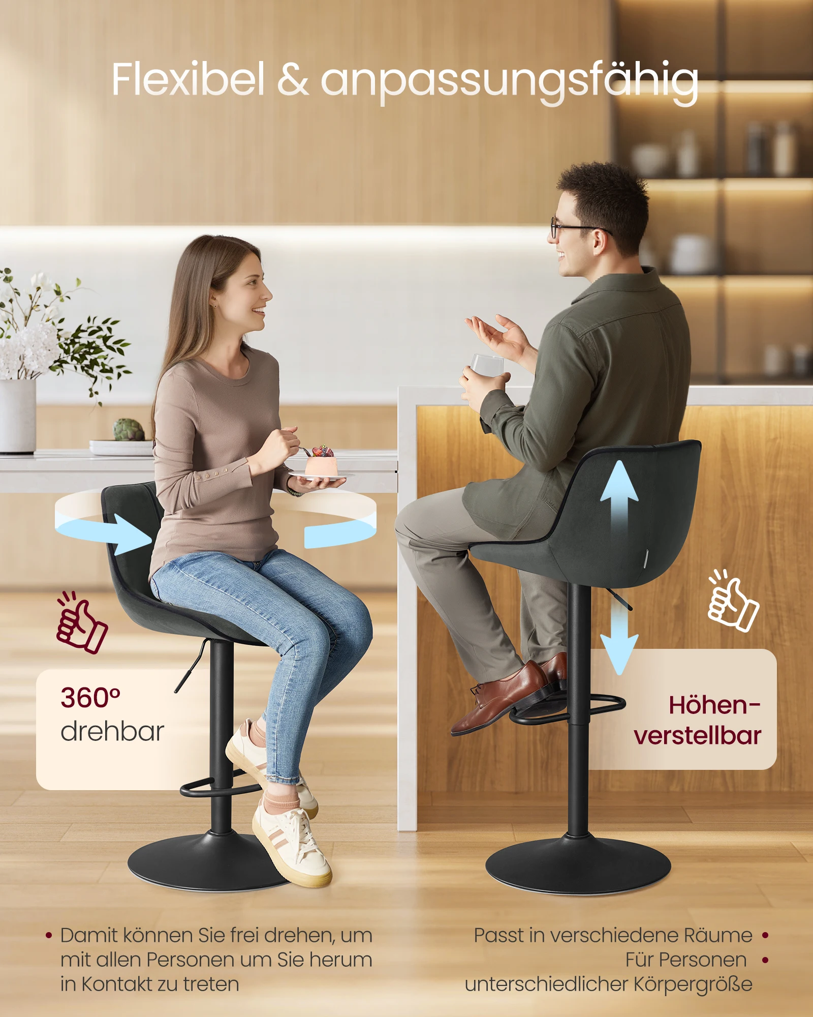 ♡SchnellansichtBarhocker, 2er-Set, Samt-Barstuhl, höhenverstellbar, hoher Küchenhocker, 360° ° Drehbarer Freizeitstuhl Esszimmerstuhl mit Rückenlehne122.69 EUREUR 294.66Heiß★★★★★★4.9