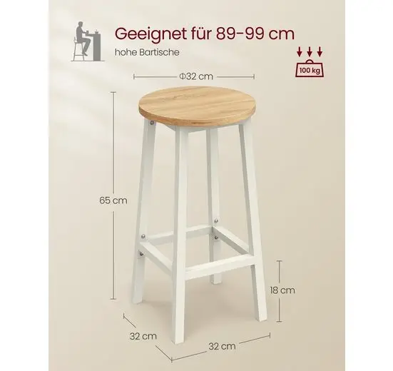 VASAGLE Barhocker Barstühle (Set, 2 St), bis 100kg belastbar - TopDealBox